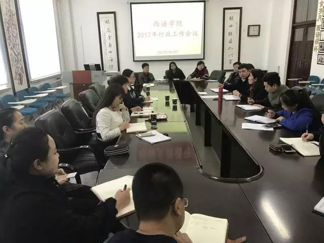 于3月28日14点在西语楼211室召开新学期行政工作会议。党委书记李贵彬、院长程爽等院领导班子成员及全体辅导员、全体行政工作人员出席本次会议。
