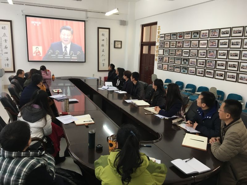 楼211会议室举行中心组学习,收看中国共产党第十九次全国代表大会开幕会,学院领导班子成员、三办主任、系主任及辅导员等参加,党委书记李贵彬主持会议。伴随着雄壮的国歌,大会正式开幕。跟着大会现场进程,参会全体党员起立齐唱国歌并肃立为老一辈革命家默哀。在观看过程中,大家认真聆听了习近平总书记代表十八届中央委员会向大会作的报告,全体党员一致认为,党的十九大是在全面建成小康社会关键阶段、中国特色社会主义发展关键时期召开的一次十分重要的大会,对鼓舞和动员全党全国各族人民继续推进全面建成小康社会、坚持和发展中国特色社会主义具有重大意义。现场气氛庄严、神圣而又热烈。观看结束后,党委书记李贵彬、院长程爽提出牢记使命、认真学习、看齐中央、落实践行的要求。同时,在学院503教室2016、2017级200余名党员及普通同学集体观看了开幕会。下午,学院教师党支部分别召开支部党员大会开展“学习党的十九大,践行五个好作风”作风整顿专题党课活动,学院班子成员深入到各支部中,与教师党员讨论、交流党的十九大召开及报告,各支部按照安排进行了一次严肃、认真的专题党课学习。