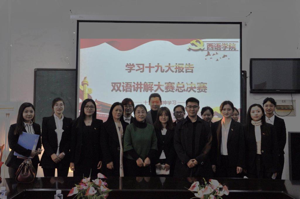 党委于11月1日下午在西语楼527室举办了学习十九大报告双语讲解大赛总决赛。学校“两学一做”及作风整顿工作督导组长统战部长王阿诺、组员汤海成、张立志、iqqtv