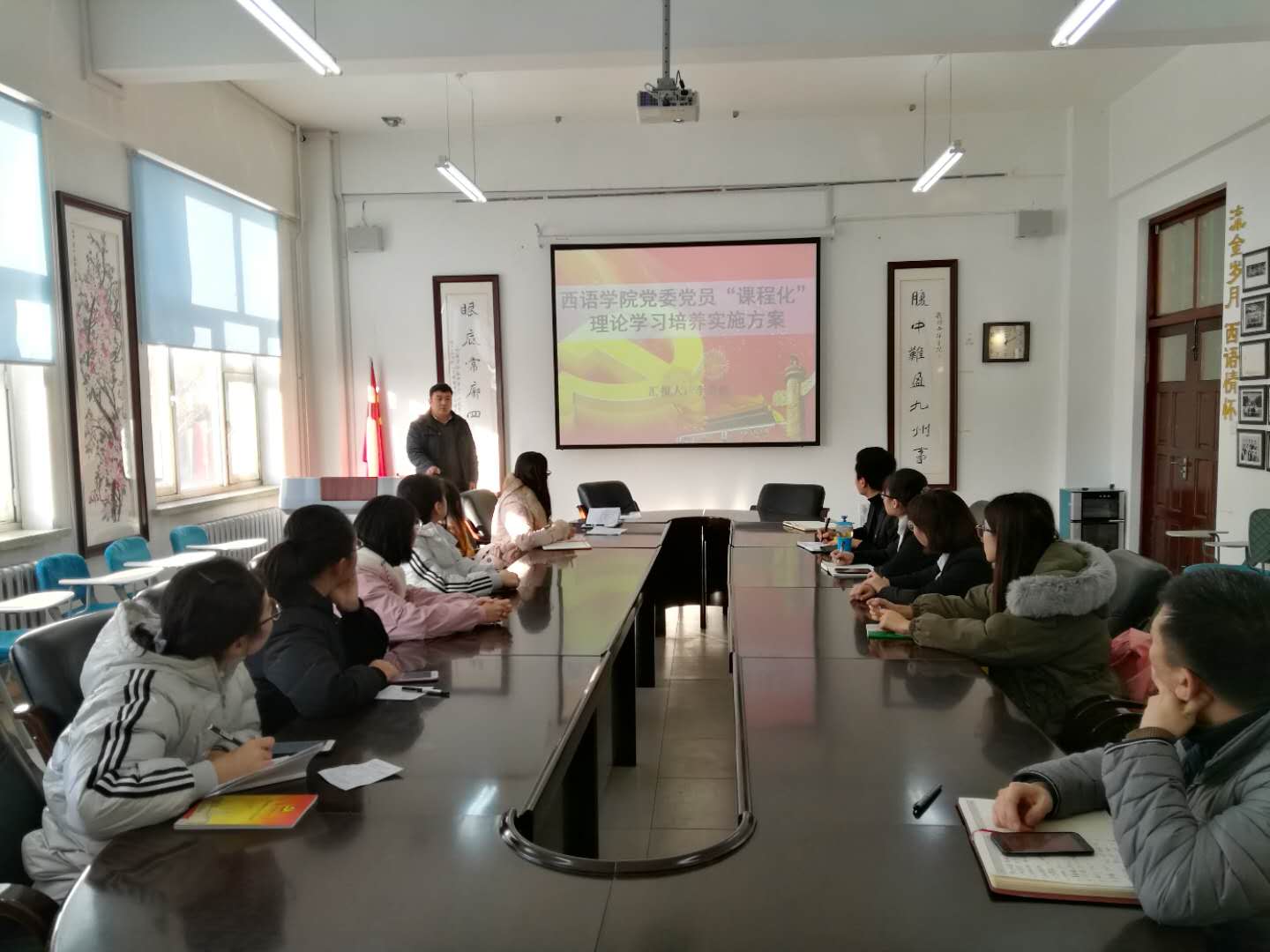 党委成立了党员课程化学习培养研发项目组,于2017年12月1日下午1:00在西语楼211室举行启动仪式。学院党委书记李贵彬,党委副书记刘春玲,副处级辅导员杨晓明,辅导员潘玉川、吴俊辉及项目组成员参加,仪式由学院党委书记李贵彬主持。