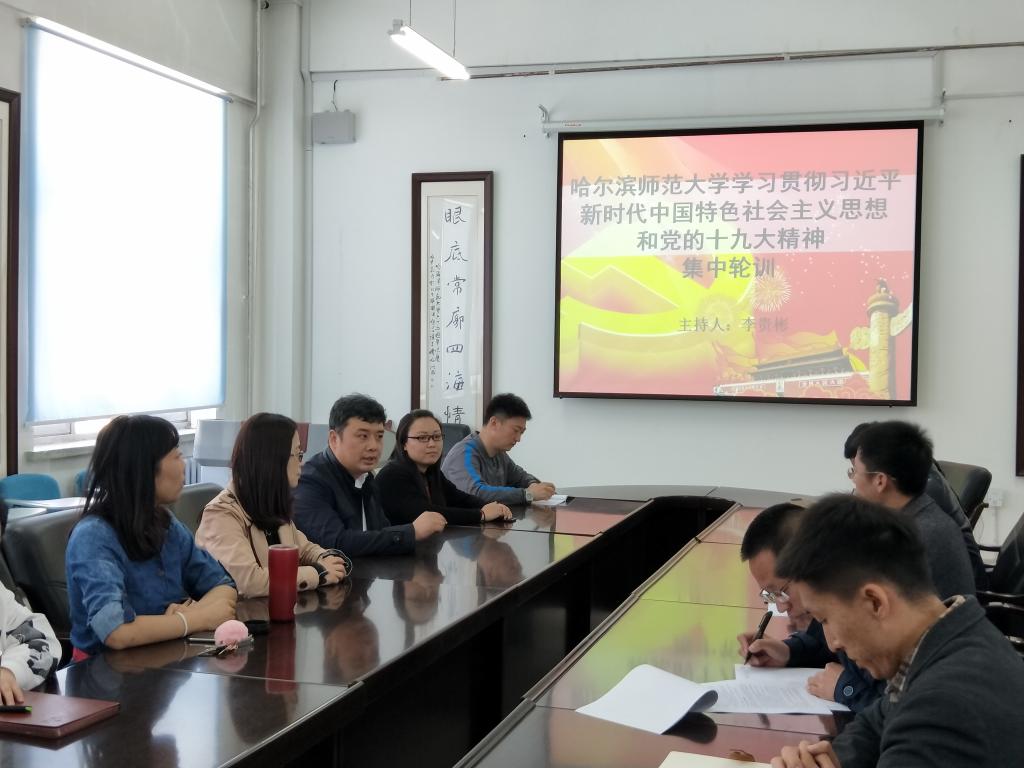 学院党委统筹协调教学科研办公室、院办、学生工作办辅导员的工作时间,就近安排学习场所,保证了参训同志全部覆盖并取得效果。本次轮训工作一共分为两次课程。第一次课程是集中观看中共黑龙江省委党校、省行政学院党史党建教研部孙艳春的《中国共产党章程》解读的视频,通过观看视频,深入学习十九大修改后的党章,明确党章的内涵。第二次课程是由党委书记李贵彬主讲的题为《学习贯彻习近平新时代中国特色社会主义思想》的报告,李贵彬从习近平新时代中国特色社会主义思想的形成背景、丰富内涵和指导意义三个方面进行了阐释,并结合学院党建工作、思想政治教育工作、管理服务等实际深入讲授,使与会人员进一步领会了习近平新时代中国特色社会主义思想的精神实质。