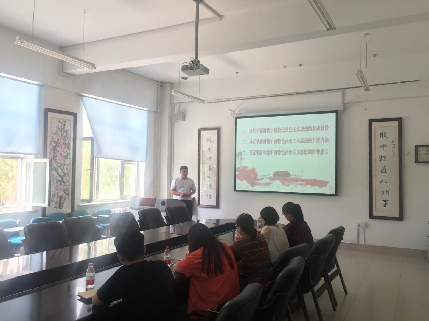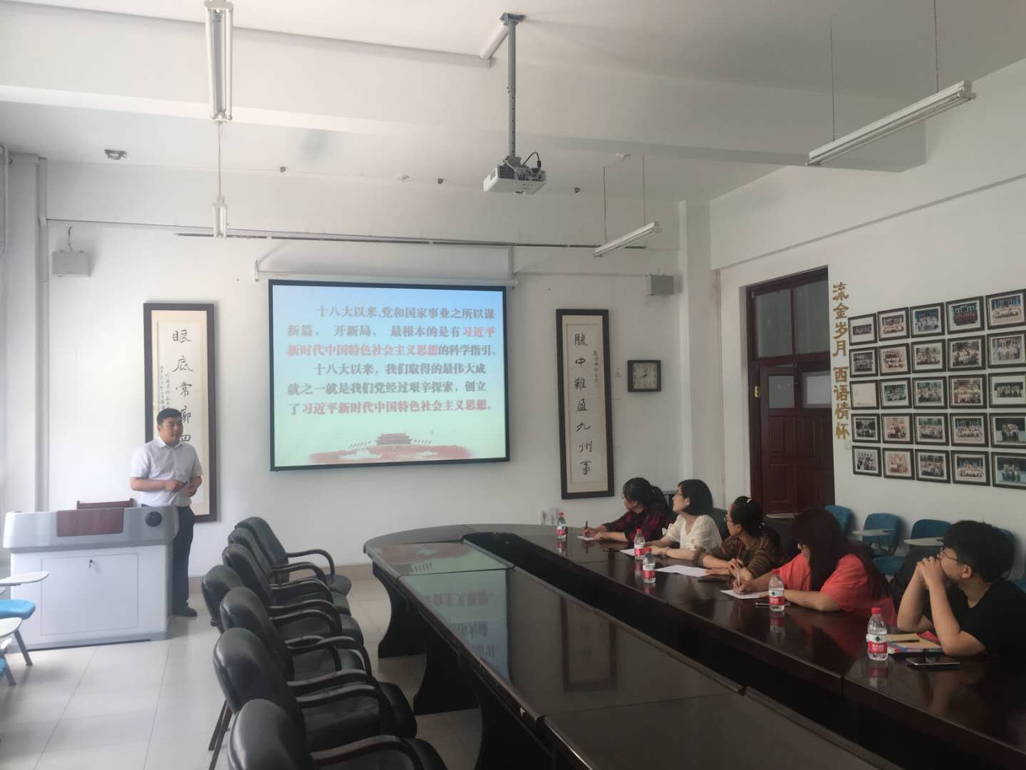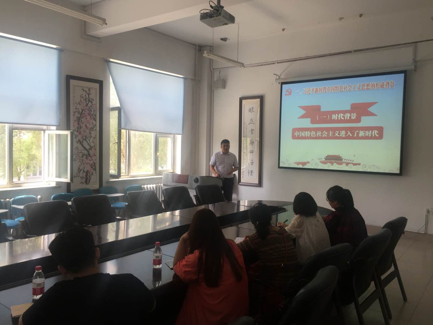 为深入学习贯彻习近平新时代中国特色社会主义思想和党的十九大精神,落实《关于“七一”期间开展“党课进支部”活动的通知》要求,6月28日12点30分,学院党委书记李贵彬为教职工第五党支部讲授主题为《深入领会习近平新时代中国特色社会主义思想》的党课,教职工第五党支部党员参会。
