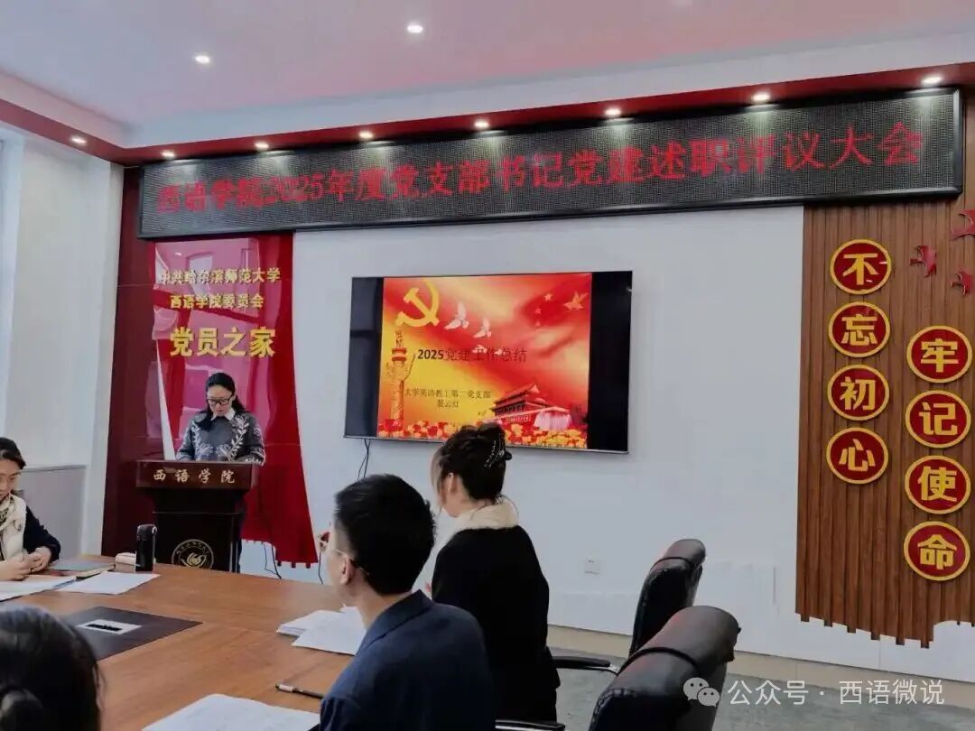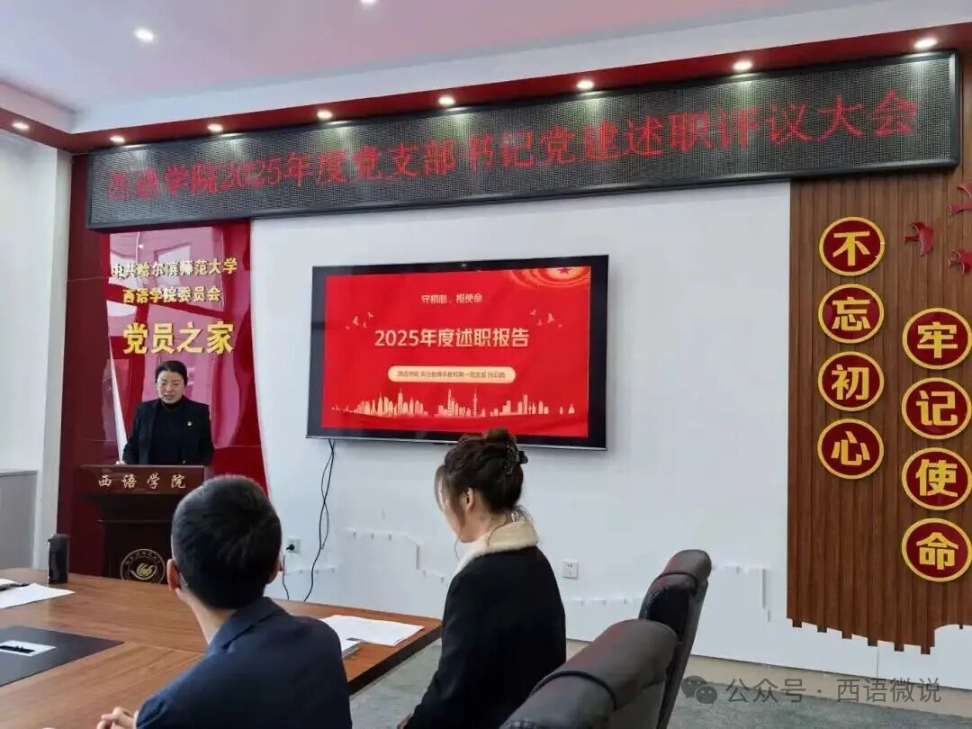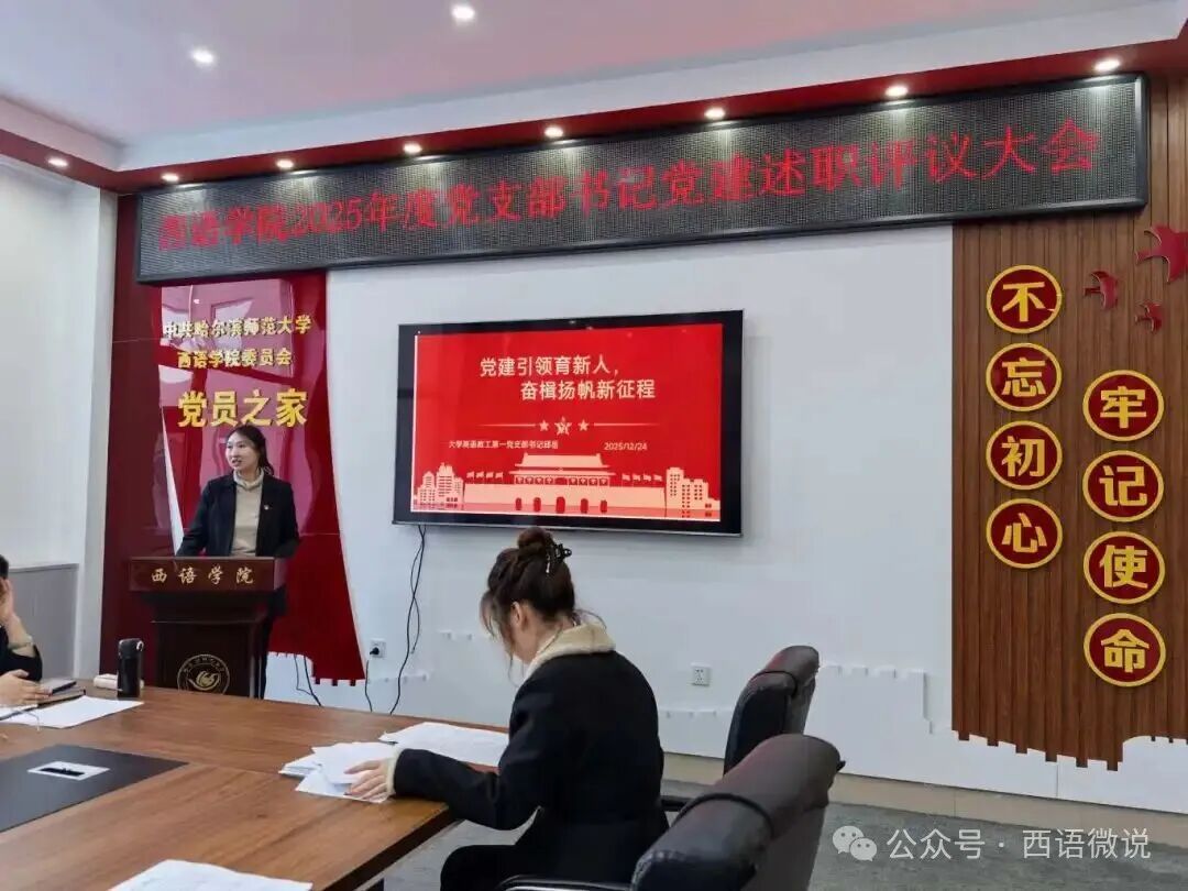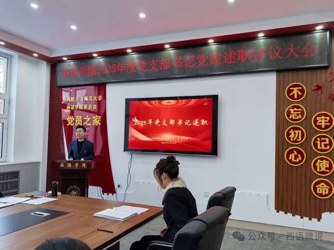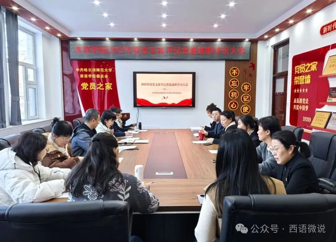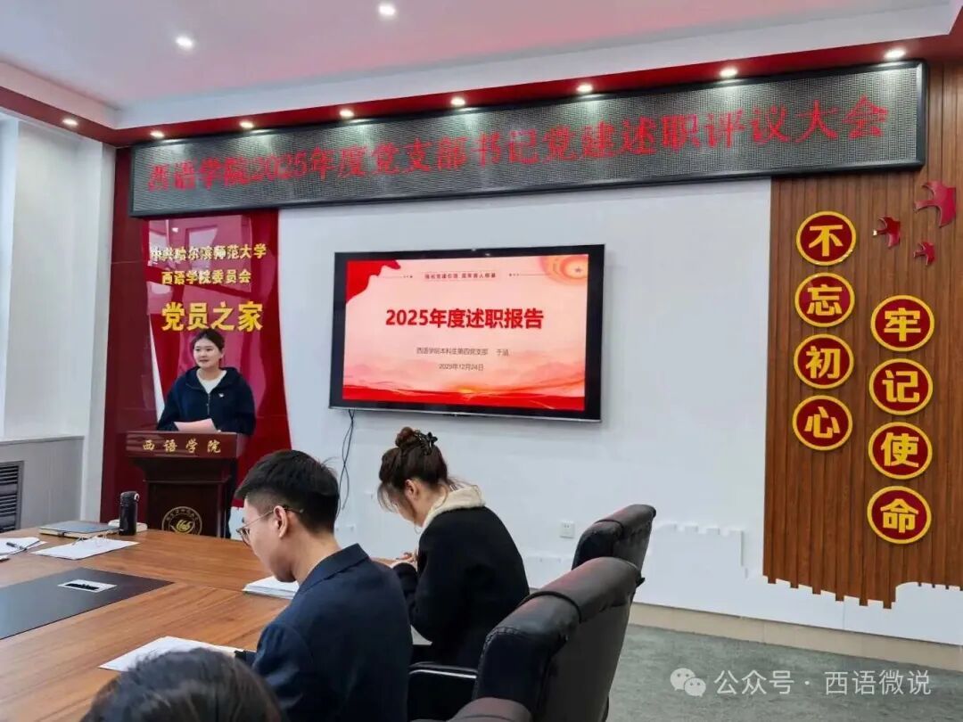 于2025年12月24日14时在西语楼204召开2025年度党支部书记党建述职评议大会。学院全体党委委员与各党支部书记参会,本次会议由学院党委书记李晓航主持。