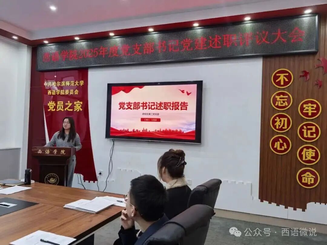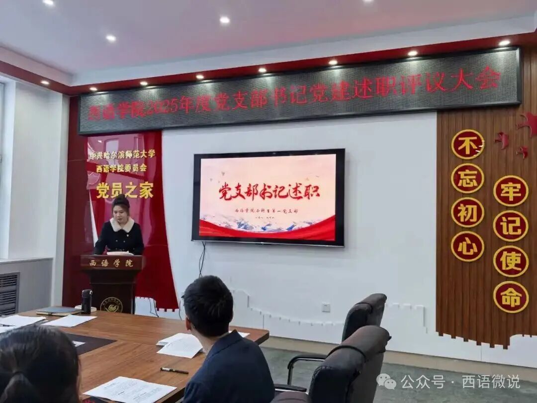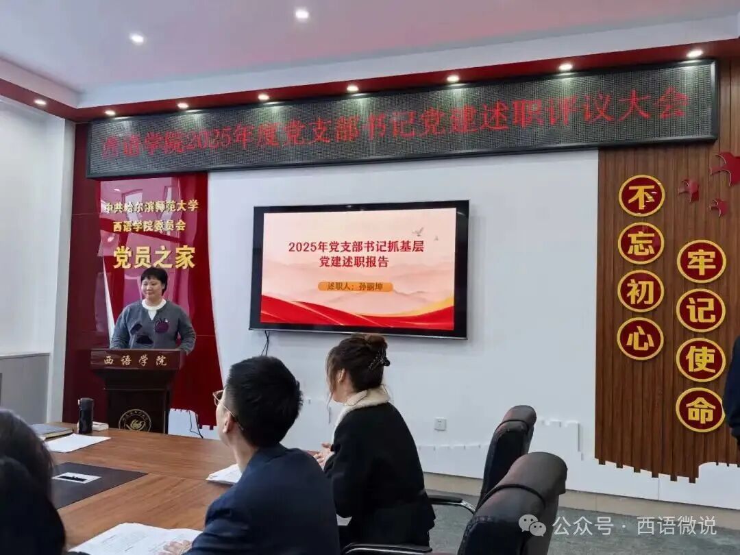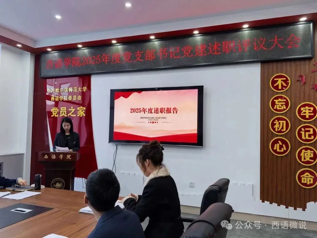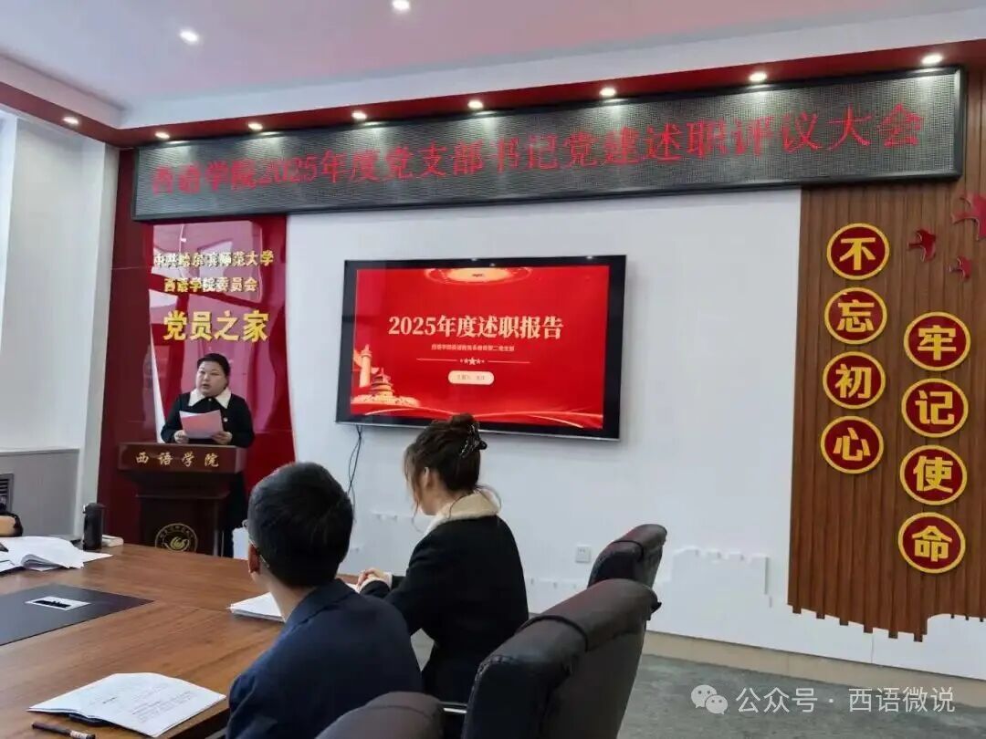 于2025年12月24日14时在西语楼204召开2025年度党支部书记党建述职评议大会。学院全体党委委员与各党支部书记参会,本次会议由学院党委书记李晓航主持。