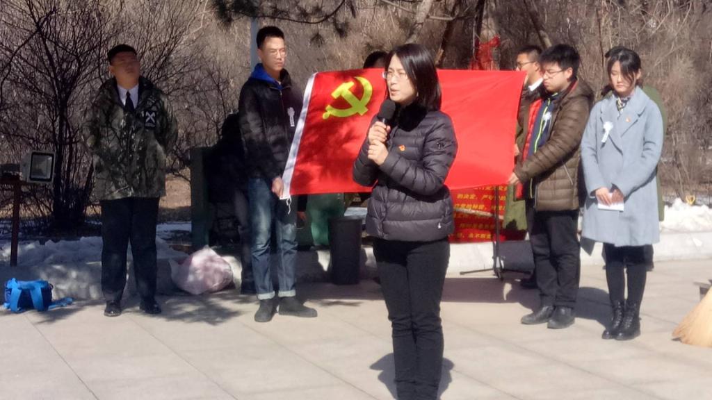 在朱瑞将军的烈士墓前,四名学生党员代表清扫烈士墓,吴俊辉老师和周桐老师代表党员敬献花篮,随后刘春玲副书记扶正挽联花篮,全体党员肃立默哀一分钟,表达了对革命先烈的崇高敬意和敬仰。党委副书记刘春玲带领预备党员举行了入党宣誓仪式。通过宣读入党誓词,学生党员们更加明确了自己的责任与义务,坚定了传承和发扬先烈们不屈不挠的精神,为民族的繁荣、富强而奋斗的决心,端正了入党动机,坚定了自已的共产主义信仰。