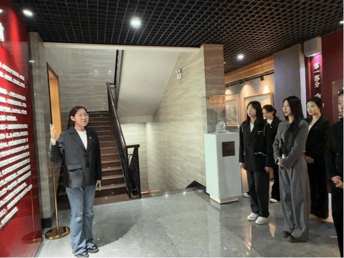步入党史纪念馆,历史厚重感扑面而来。本次活动特别安排翻译专业王秋艳、董佳雪、佟美琦三位同学担任英语讲解员,以双语讲述哈尔滨党组织从建党初期、抗日战争、解放战争到社会主义建设、改革开放的光辉历程。全体成员跟随讲解,通过珍贵历史照片、文献资料、实物展品与场景复原,全面回顾党在艰苦卓绝环境中坚守信仰、浴血奋战、为民奋斗的奋斗足迹。