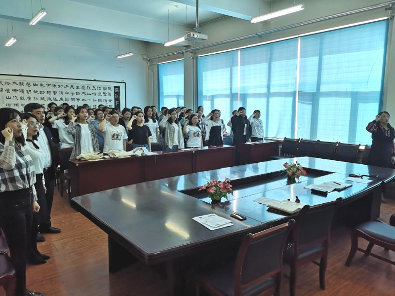 接下来,开展了“重温入党志愿书,重温入党谈话,重温入党誓词”三重温环节中,2019届毕业生党员代表沙芳兵宣读入党志愿书,全体党员重新翻阅自己的入党志愿书,支部大会接收新党员的场景历历在目,牢记入党时间是自己的政治生日;李贵彬书记带领大家重温入党谈话,提出三点希望:一、不忘初心,践行宗旨,坚定信仰,不断端正入党动机,不断改正自己的主观世界,加强理论学习;二、牢记使命,树立全心全意为人民服务的思想,为同学,为学校服务,毕业前站好最后一班岗;三、争当表率,文明离校,在自己的岗位上再创佳绩。杨晓明老师带领全体党员在党旗前共同重温了入党誓词。