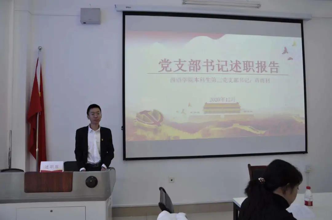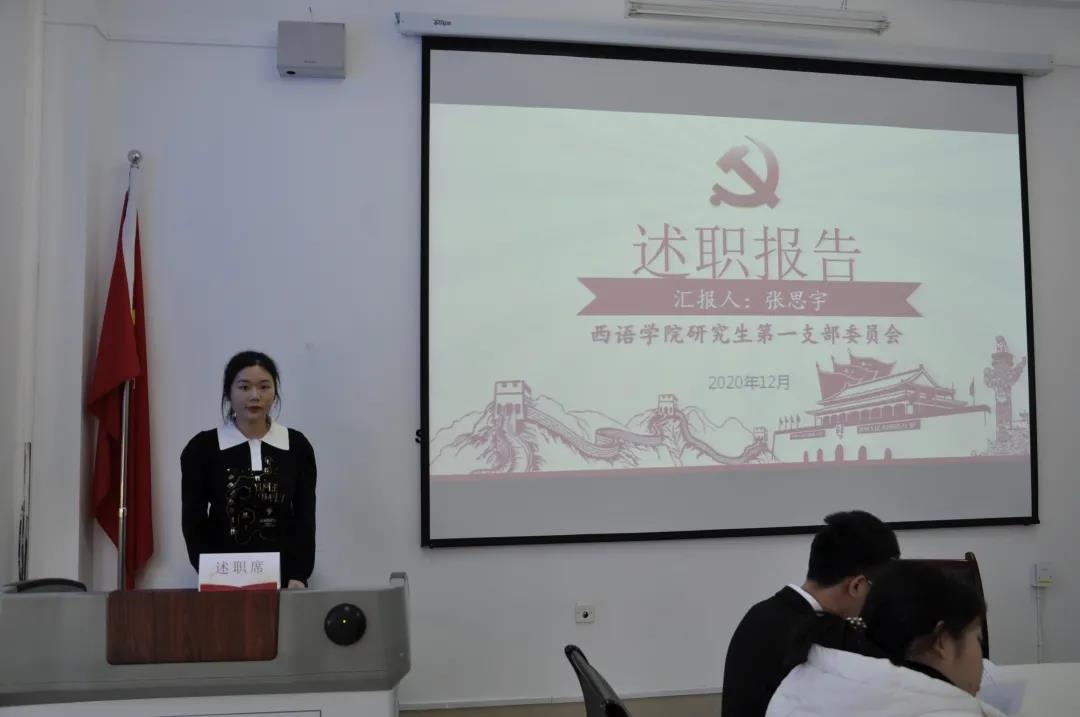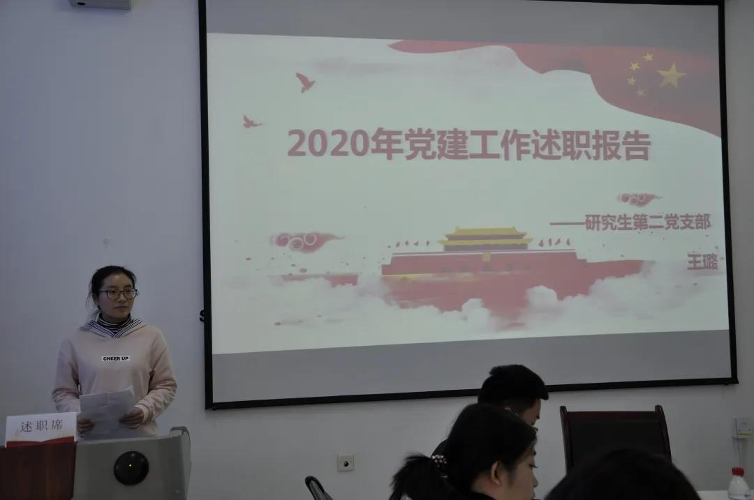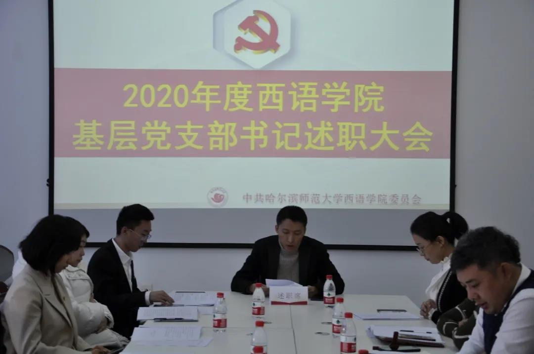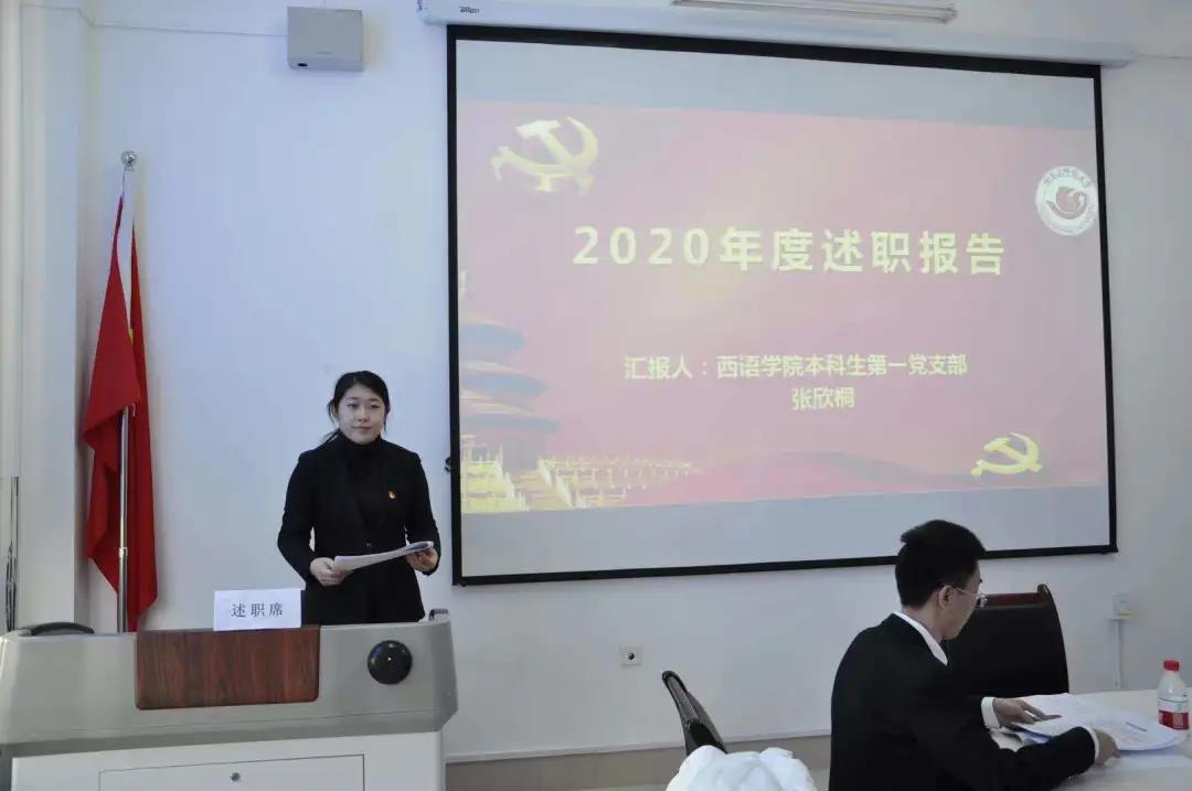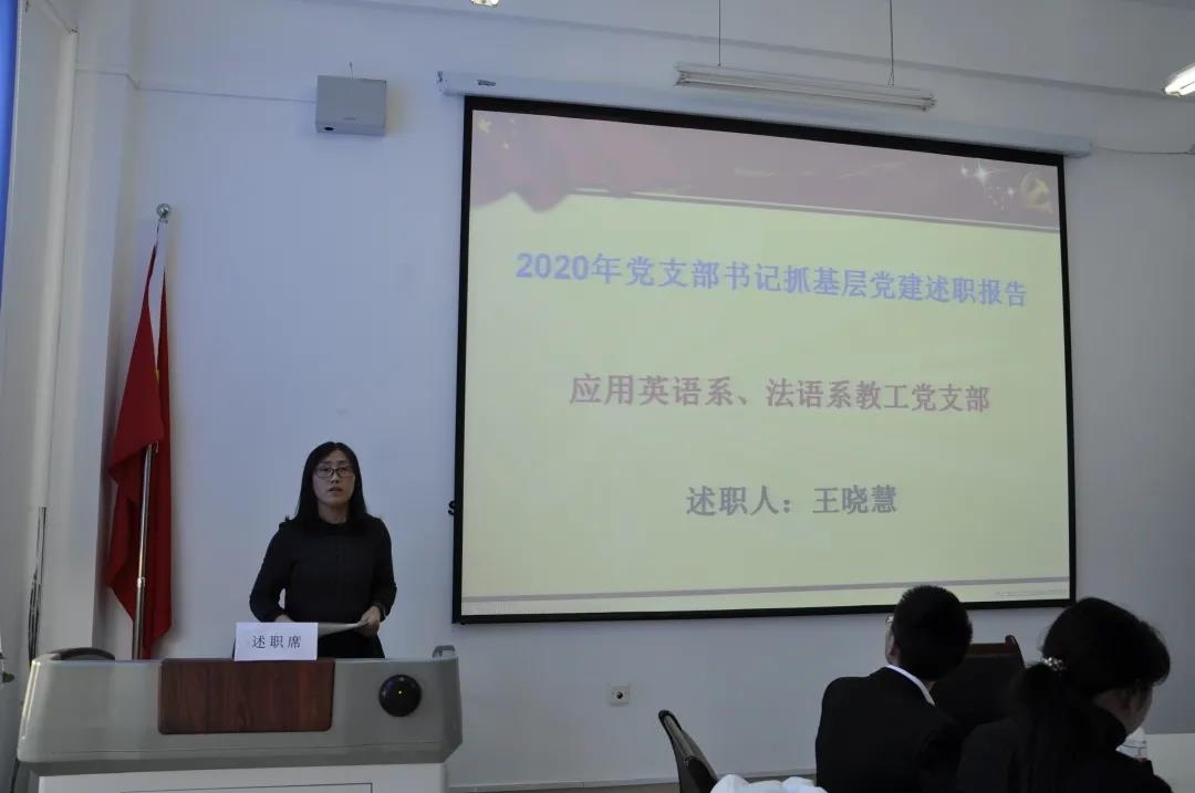 会上,英语教育系教师第二党支部书记王颖、应用英语系法语系教师党支部书记王晓慧、应用英语系西葡语系教师党支部书记杨东、本科生第一党支部书记张欣桐,本科生第二党支部书记安艺、本科生第三党支部书记蒋雨材、本科生第四党支部书记翟雪男、研究生第一党支部书记张思宇、研究生第二党支部书记王璐依次进行了述职。各位党支部书记就本人及支部一年来的政治理论学活动、三会一课制度落实情况、党员发展情况、主题教育及重点问题整改情况等方面作了述职,深入查摆目前自身在抓基层党建工作存在的问题及原因,汇报了下一步工作思路和主要措施。