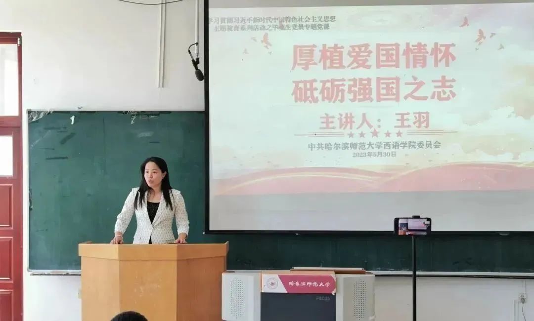 党委书记王羽给毕业生党员讲授专题党课。5月30日上午,学院党委书记王羽以“厚植爱国情怀,砥砺强国之志”为主题,采取线下、线上集中授课的方式,为全体毕业生党员讲授专题党课。
