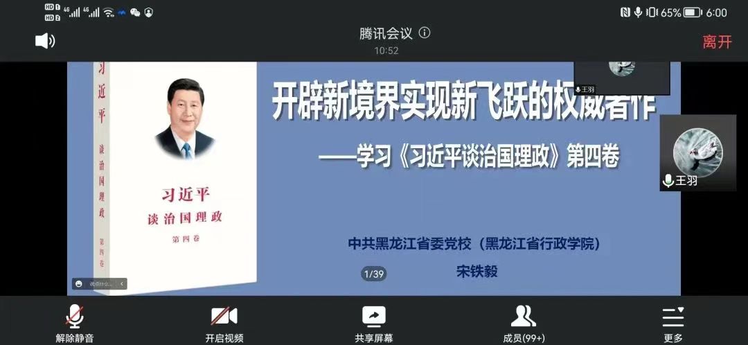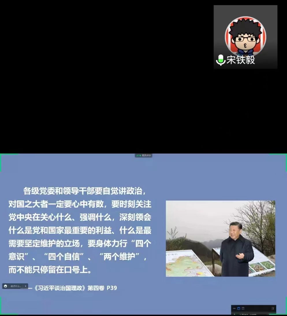 最后,宋铁毅老师总结强调学好用好《习近平谈治国理政》第四卷,要从第四卷中深刻领会两个“确立”的决定意义,正是有了习近平新时代中国特色社会主义思想,我们才能坚持正确政治方向,坚持整个中华民族的梦想,它展现出了非凡的政治智慧,巨大的理论勇气,高超的领导艺术,顽强的意志品质。