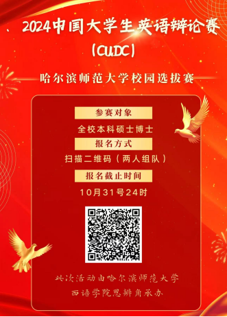 为促进大学生综合素质的全面发展,为广大学生提供思想交流、相互学习的高端平台,通过引导学生对国际热点和多元文化进行讨论,塑造能引领新时代发展的国际化人才,中国外文局全国翻译专业资格(水平)考试项目管理中心举办的2024年中国大学生英语辩论赛(China Universities Debating Championship, 简称CUDC)正式拉开帷幕。