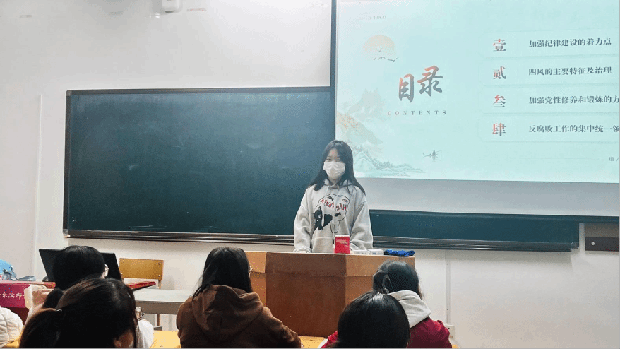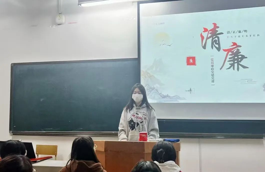 主持人陈亭瑞从真实事件入手,通过对网上相关视频资料进行案例分析,使同学们深刻认识到贪腐严重后果和廉洁自律的重要性。随后,同学们对“加强纪律建设的着力点”、“四风的主要特征及治理”、“加强党性修养和锻炼的方法”、“反腐败工作的集中统一领导”四个模块进行趣味知识问答,深入学习我国廉洁廉政相关政策,明确廉洁从政、廉洁从业作为维护社会公平正义、保障国家稳定发展的基石,不仅仅是对公职人员的要求,更是我们每个人应具备的品德。