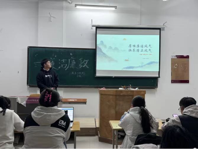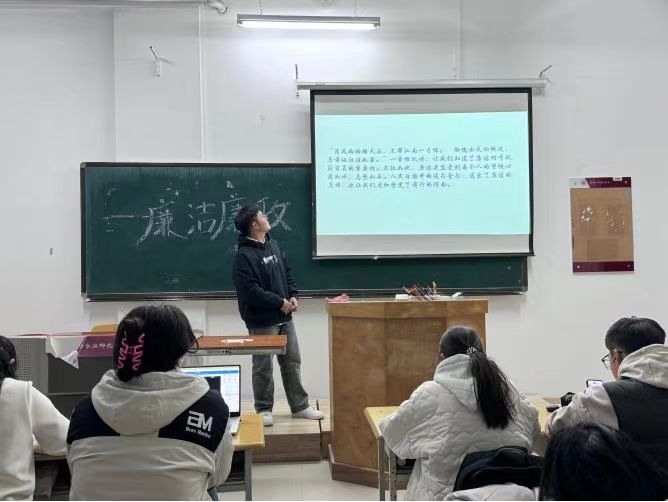 “廉洁以安心,清政以慰民,静心映清水,正行照蓝天。”从古至今,“廉洁”二字始终是我们做人做事的准则,每个人都应当重视。2024级英语(师范类)09班于2024年10月9日在西语楼511教室举办了“厚植廉洁风气,涵养清正风气”主题班会活动。