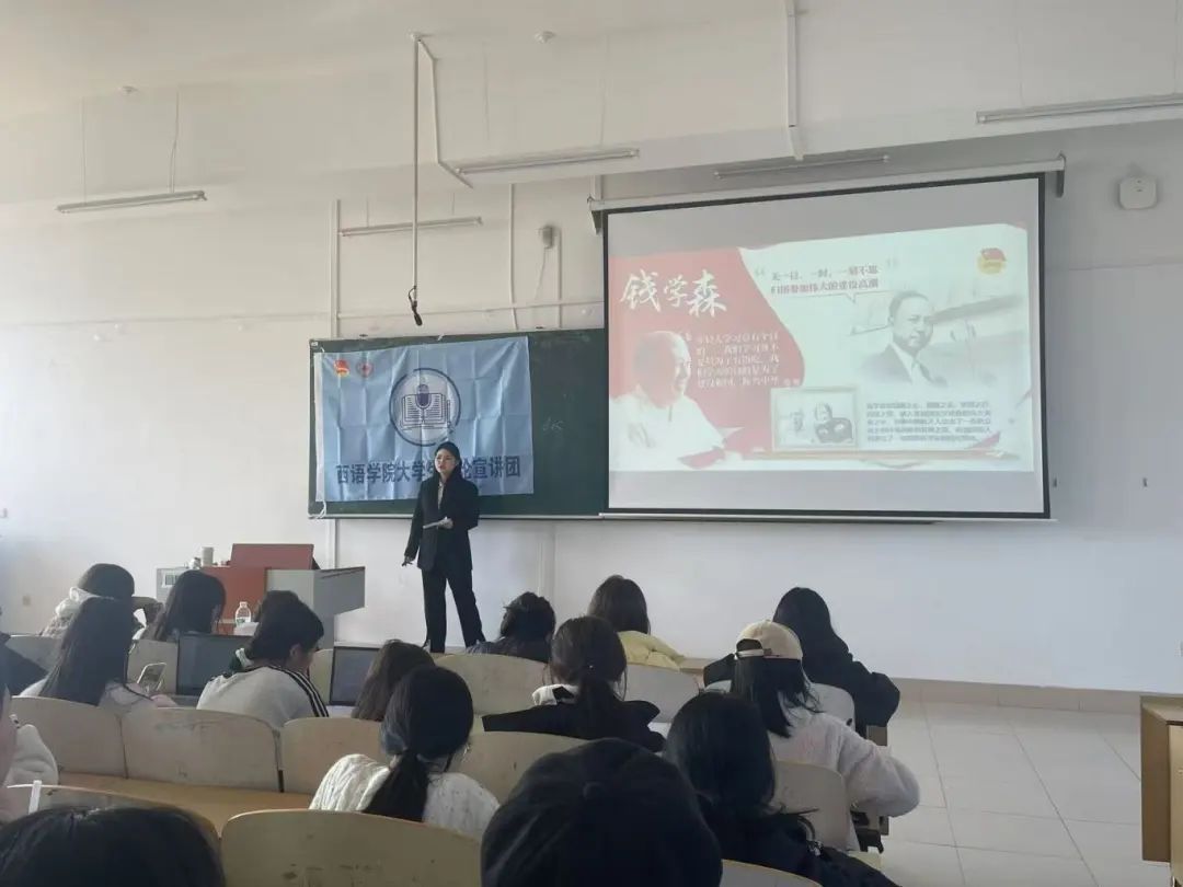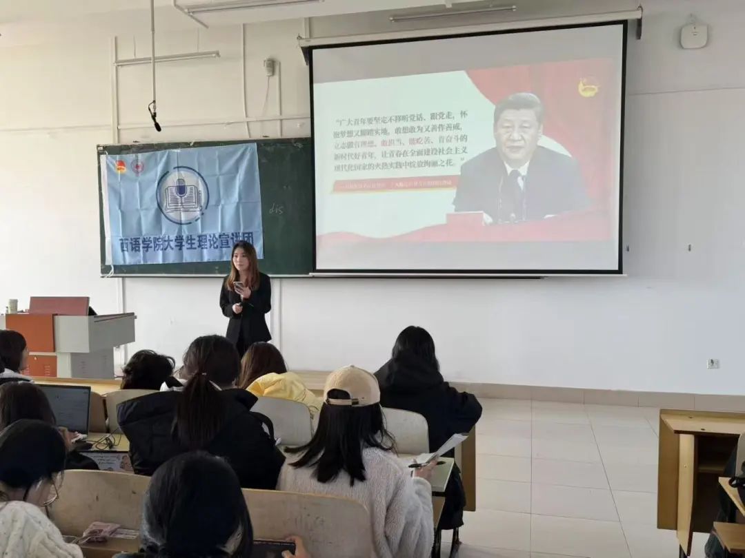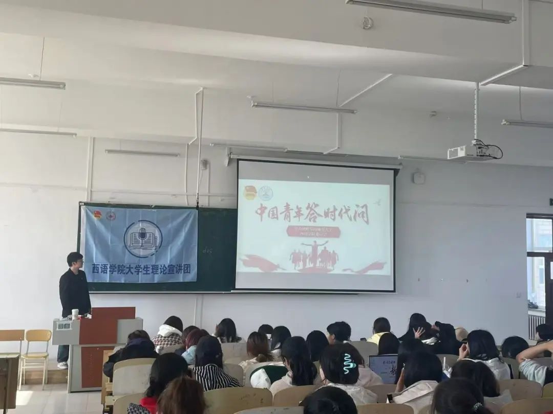 第二届大学生理论宣讲团于10月23日在西语楼503教室开展了以“青年挺膺担当:学习习总书记对青年的寄语”为主题的第一期宣讲活动。本次活动由宣讲团团长尚志明,副团长曹妍妍、李佳祁三位同学进行宣讲。