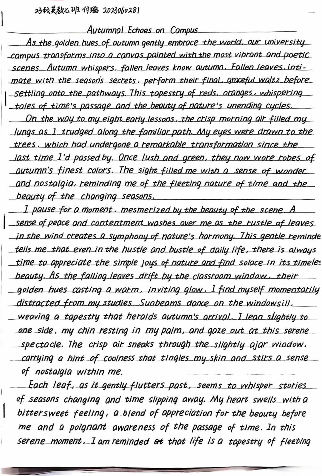 “笔尖上的心语”学生外文写作评比展示活动的成功举办,不仅提高了同学们对写作的重视程度,还给热爱写作的同学们提供了展现自我的平台。丰富了校园文化生活,调动了同学们参加活动的兴趣。期待西语学子在未来能够创作出更多精彩的外文写作作品!
