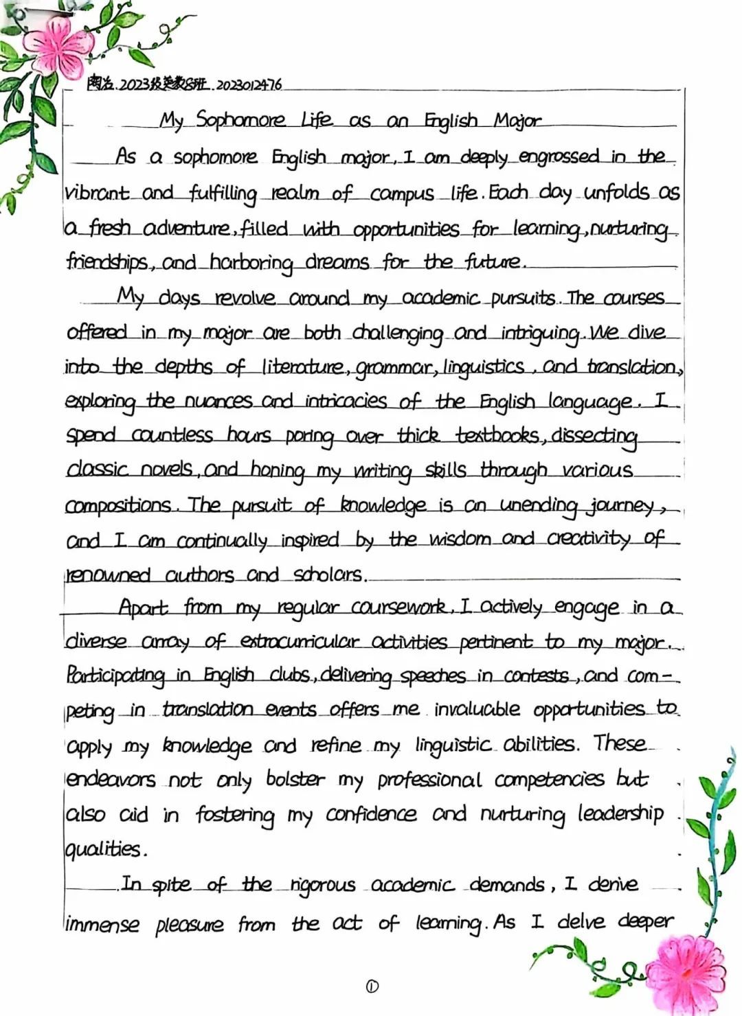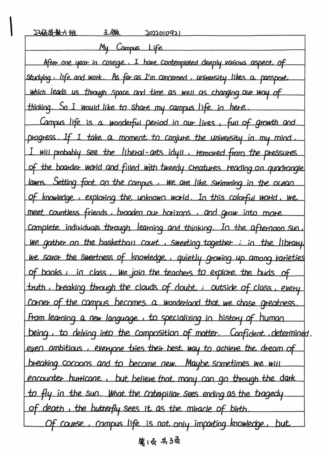 于2024年10月18日至10月24日举办“笔尖上的心语”学生外文写作评比展示活动,本次活动面向2022、2023、2024级全体同学。
