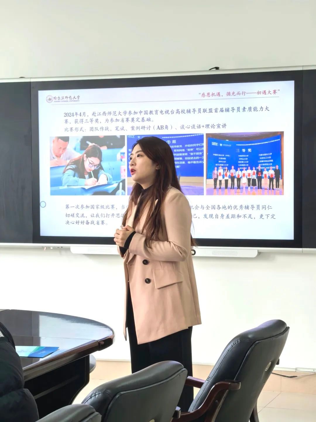 于11月6日10:30在西语楼211室举行政工干部业务培训第二讲,邀请黑龙江省第十届高校辅导员素质能力大赛一等奖获得者、地理科学学院团委副书记郭昊昕以《参加第十届黑龙江省辅导员素质能力大赛的收获与感悟》为主题进行讲座,iqqtv