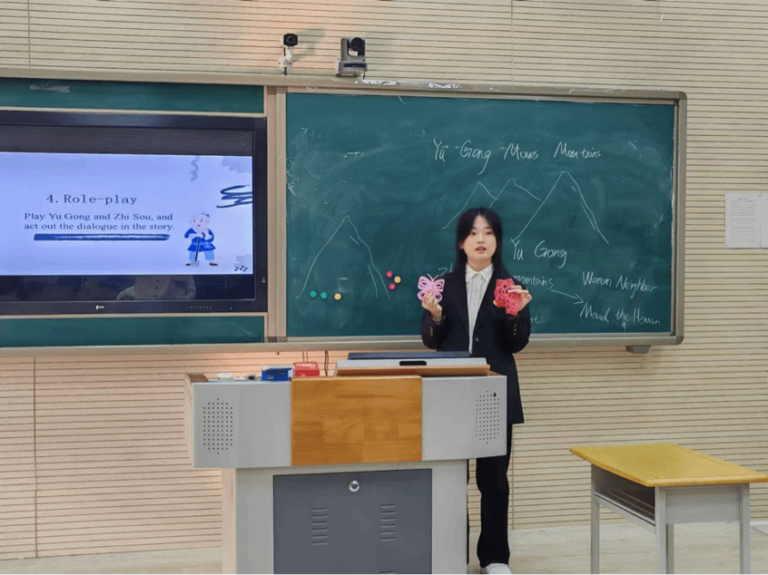 11月7日12点,比赛正式开始。展示环节分为“现场讲课”和“才艺表演”两部分。9名同学按照序号依次登场,各显其能,上演了一场精彩的教学技能大比拼。