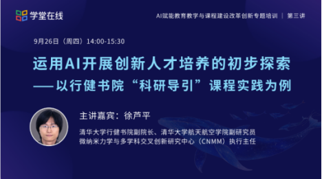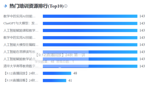 本次培训在人工智能技术快速发展的背景下,探讨课程建设面临的新需求与挑战。培训课程共20门,含8门点播课程和12门直播课程。课程内容包括人工智能时代的前沿教育理念、政策背景、技术方法、实践案例、应用心得等,在清华大学等高校专家、学者、一线名师的分享引导下,帮助教师从了解技术、应用技术、主动探索三个维度,深入探索人工智能在教育教学中的应用。