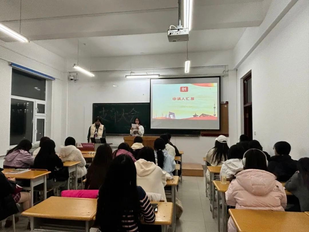 会议进行第一项,入团申请人依次就个人简历、家庭情况、对团的认识和动机进行阐述,并且说明了自己在平时学习和生活中的表现。