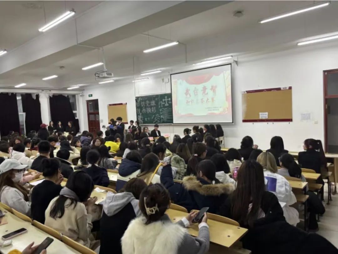 竞赛过程中,参与知识竞答的五组选手充分展现了扎实的知识功底和良好的精神风貌。他们冷静思考、快速答题,在赛场上尽显青春风采。每一次精彩的回答都赢得了现场观众的阵阵掌声,充分展现了西语学子对中国共青团的热爱和对党的忠诚。