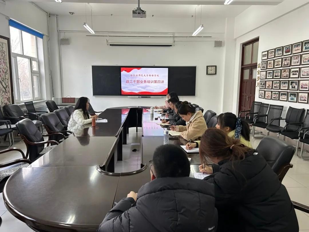 在西语楼211室举行政工干部业务培训第四讲,学院党委书记王羽作题为《增强政治素养 严明工作纪律》的专题辅导,学院全体辅导员参加培训。