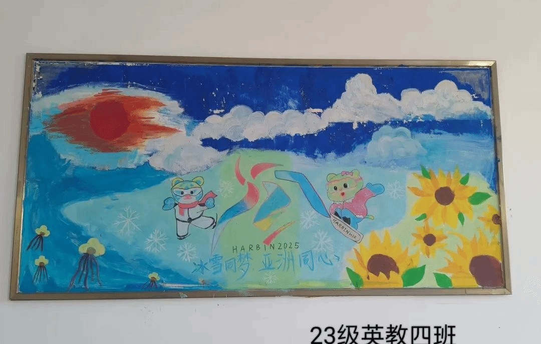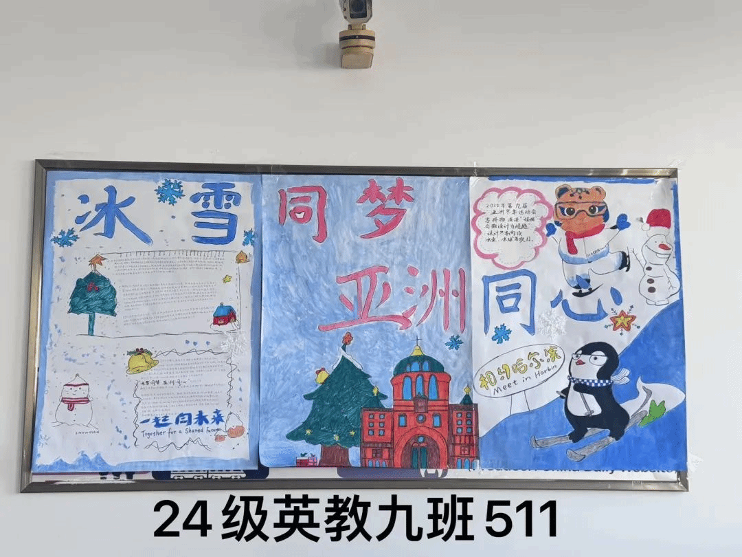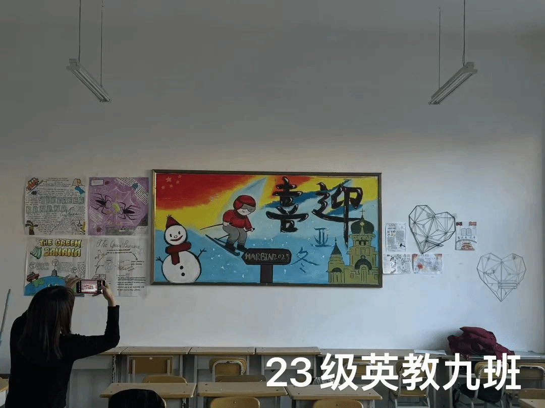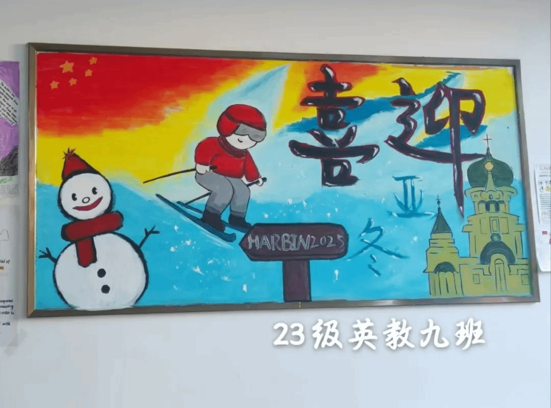 各班对本次活动十分重视,在整个布置活动中,同学们充分发挥自己的想象力和创造力,积极参与每一个环节。擅长绘画的同学绘制了精美的板报,充分体现了亚冬会的主题,栩栩如生的吉祥物更是给班级增添几分活力。手工制作达人制作出了别具一格的装饰品,充分体现审美,融合了冰雪元素让教室焕发出勃勃生机。一尘不染的教室不仅为同学们提供更好的学习环境,更体现了班级昂扬的精神风貌。
