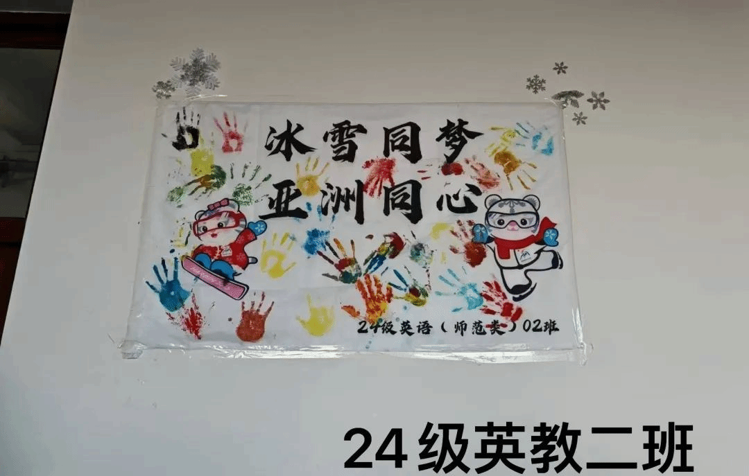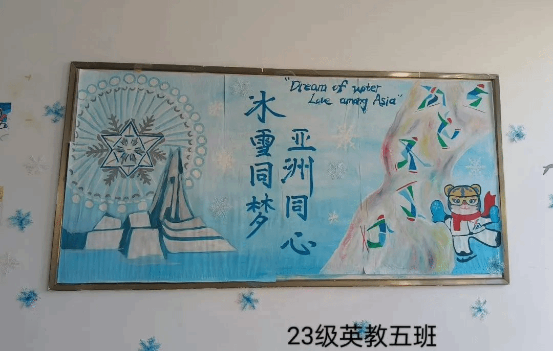 班级迎亚冬,齐心焕新容。冰雪赛场景,墙上绽华浓。健儿风姿展,激励众心同。知识角落处,赛事妙趣充。愿君同参与,共赴亚冬梦。让我们共同创造更加美好的班级未来!