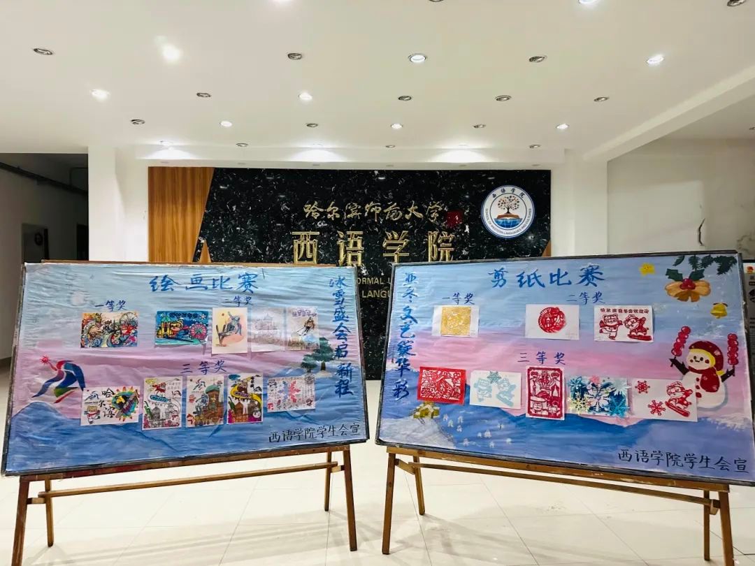 雪落北国,千里冰封,银装素裹的冰雪之城给人带来无数的幻想。所有参赛同学的作品中都有对冰城的赞扬,也有对亚冬精神的支持,他们以传承千年的艺术,绽放今日之绚烂。本次活动的成功举办使同学们更好的体会了冬季运动的魅力,同时传递出了温暖和文化的氛围。