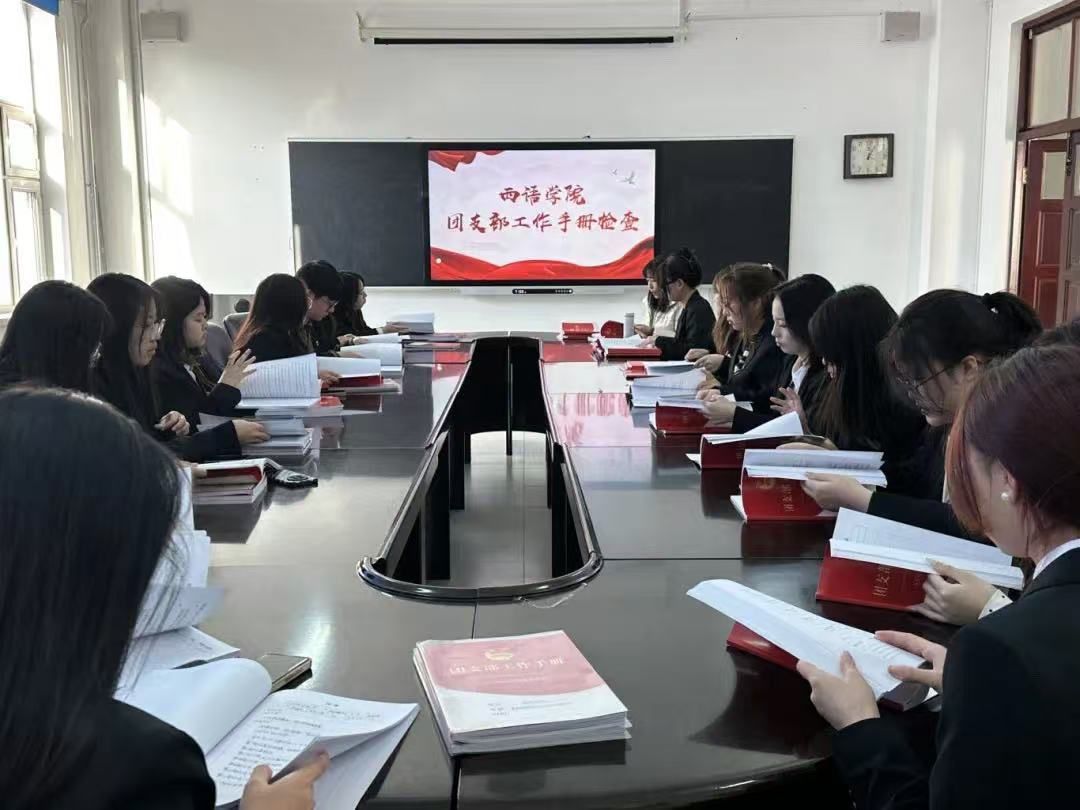 团委书记徐伟伟、西语团委学生兼职副书记及各部部长于西语楼211室进行2024-2025年度《团支部工作手册》检查工作。