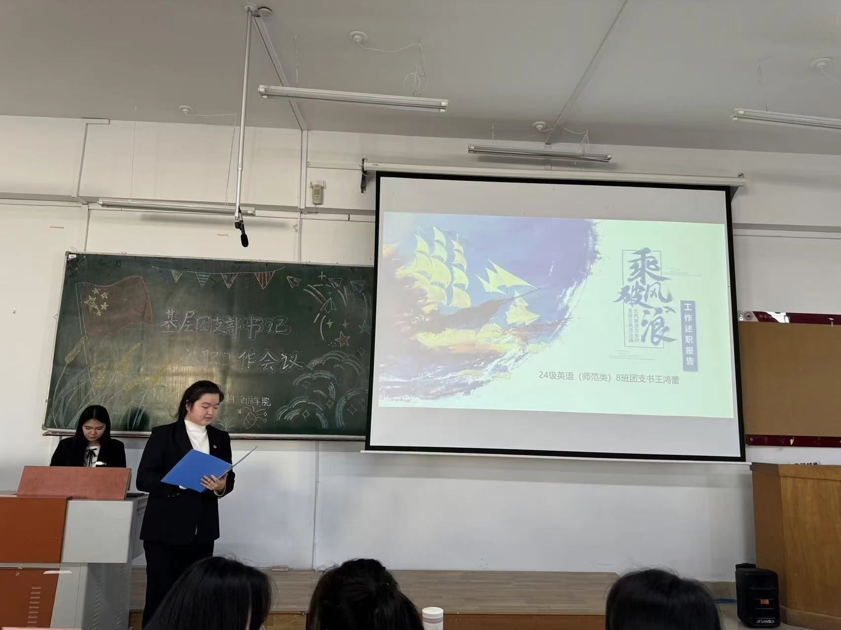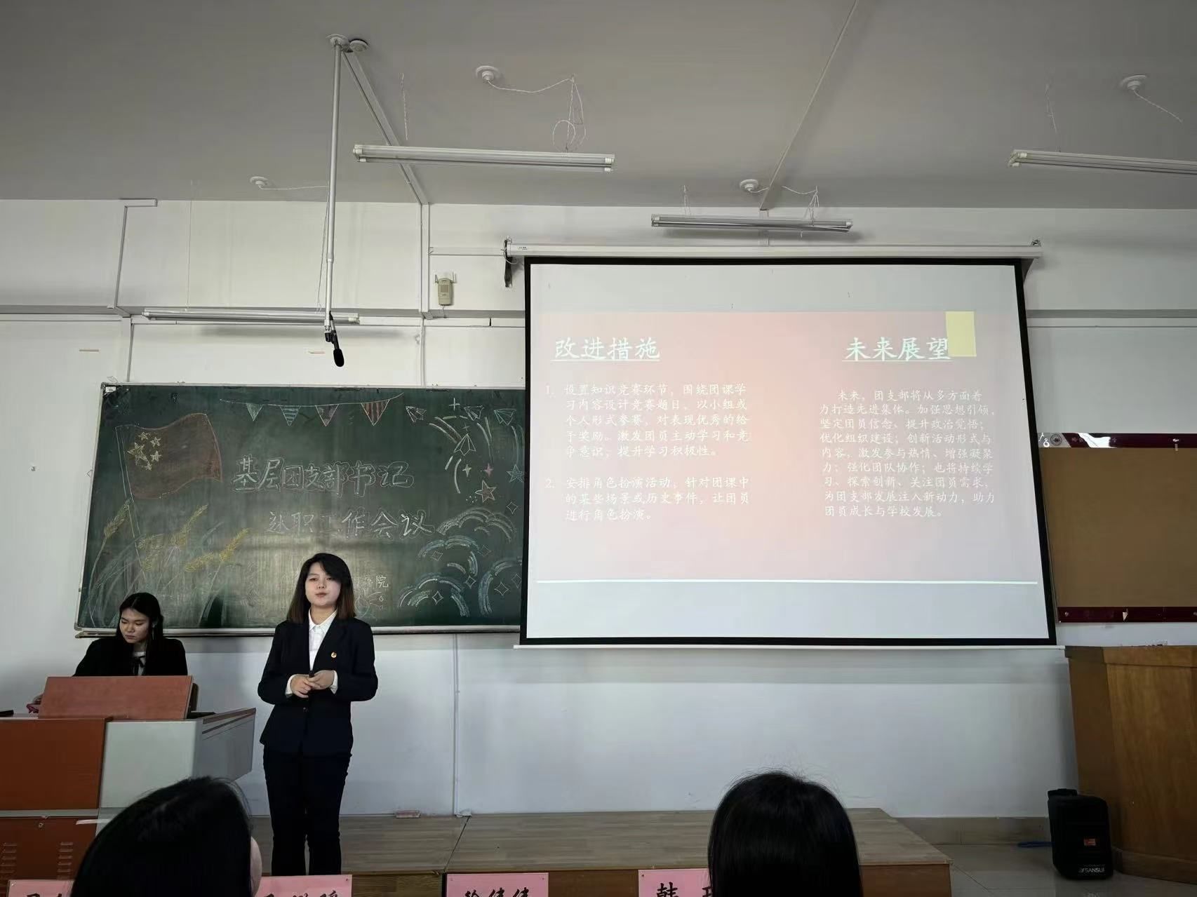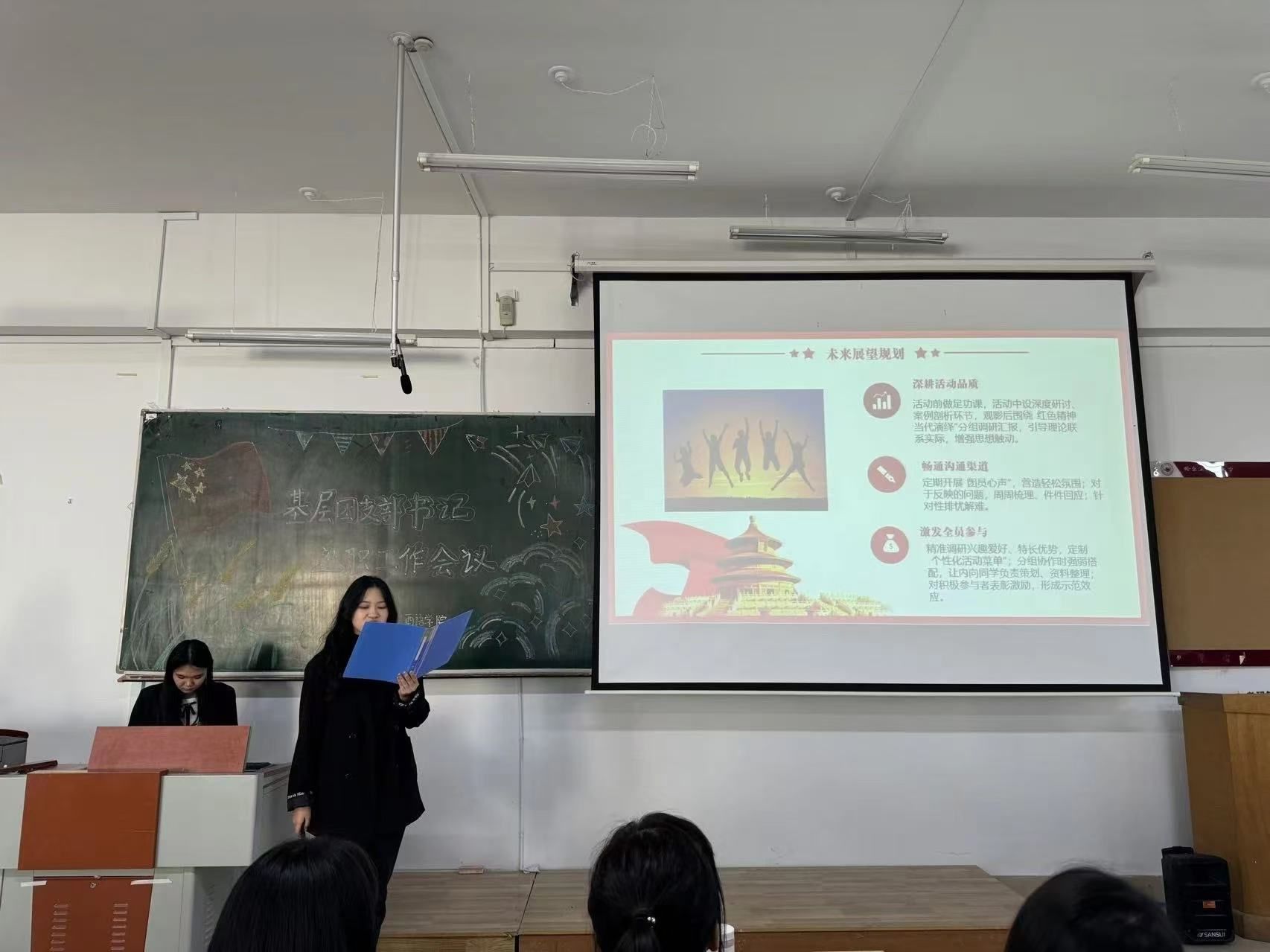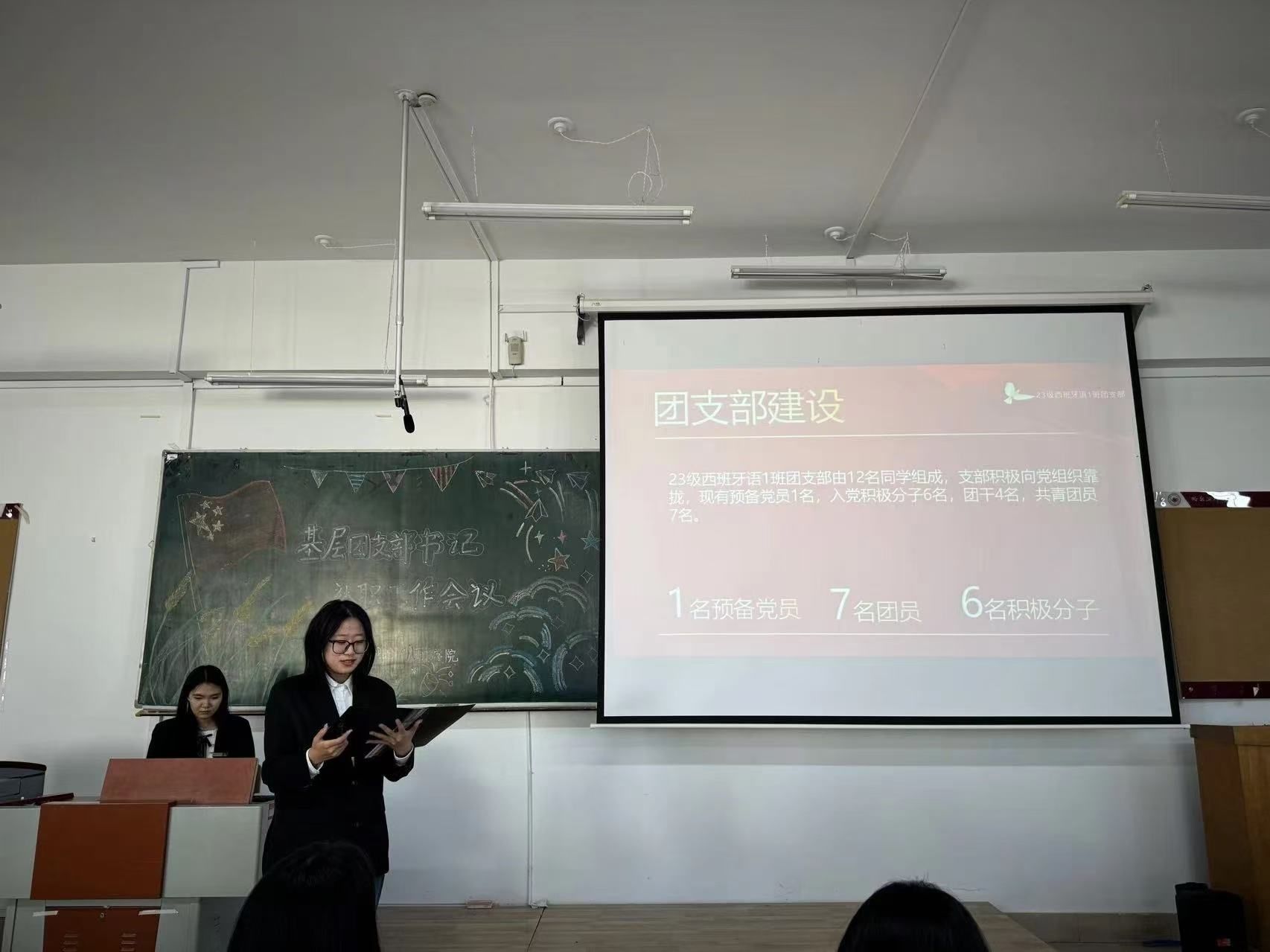 团委书记徐伟伟在会议最后进行总结发言。她首先对西语团委以及各团支书的工作表示了肯定和赞赏,对团委学生干部及各团支书的努力与付出表示了感谢与鼓励,通过各方共同努力保证了我院共青团组织工作的稳步前进。同时,她对明年3-6月的工作进行了部署与安排,并表示在未来的一年,将继续跟随我院党委及校团委的领导,立足团校建设,提高团课、团活的创新性,加强组织建设,增强团员凝聚力,推动西语团委不断取得新进展,焕发新活力!