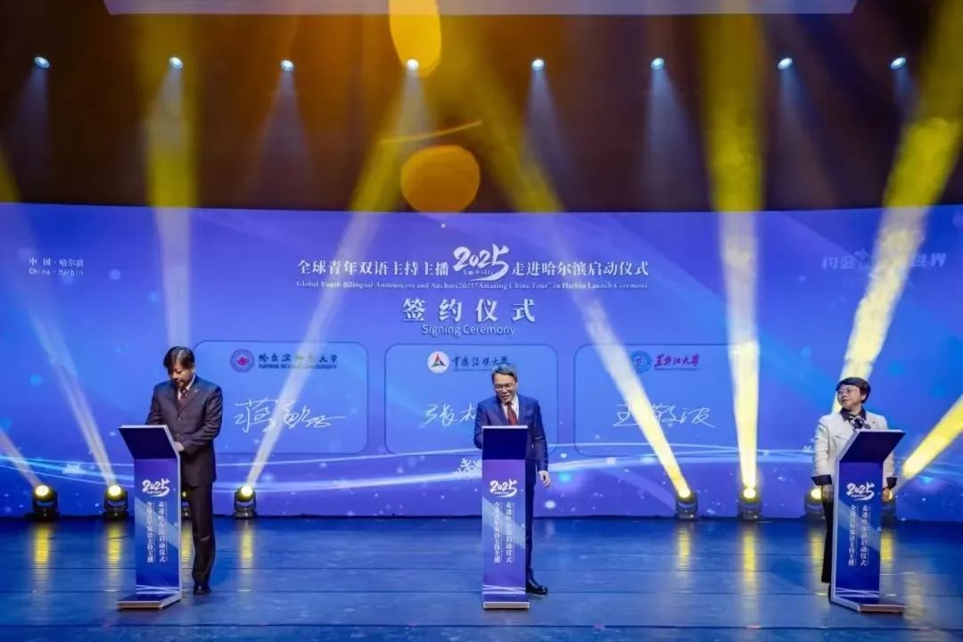 学生代表赴哈尔滨大剧院参加全球青年双语主持主播2025“美丽中国行”走进哈尔滨活动启动仪式,见证“美丽中国行”的青春风采与尔滨之美。
