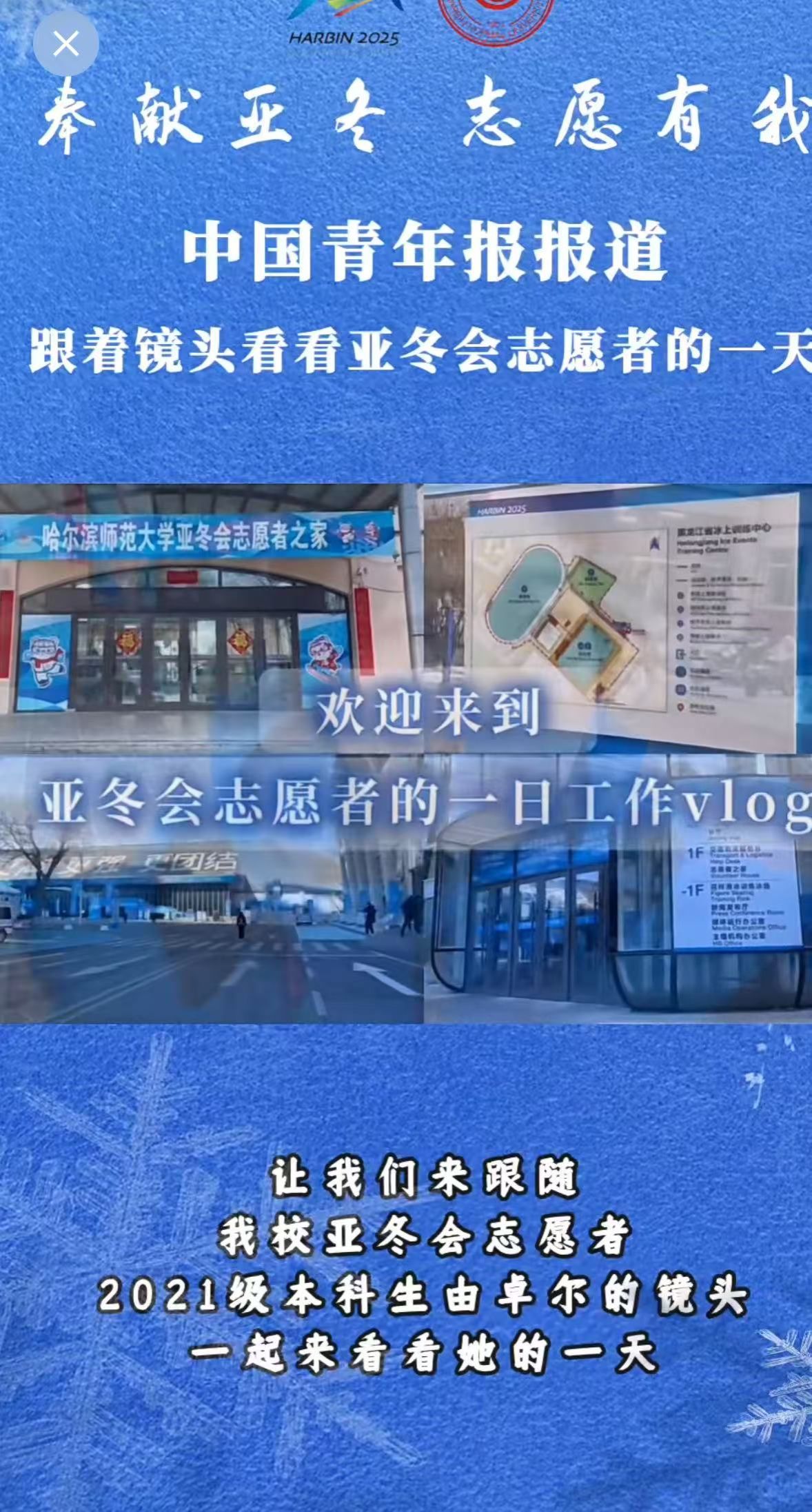 2025年哈尔滨亚洲冬季运动会于2月7日在哈尔滨市正式启幕,经过层层筛选,我院有68名志愿者参与志愿服务活动,其中2021级由卓尔担任颁奖仪式助理,让我们跟随她的镜头,走进亚冬会志愿者的幕后日常。