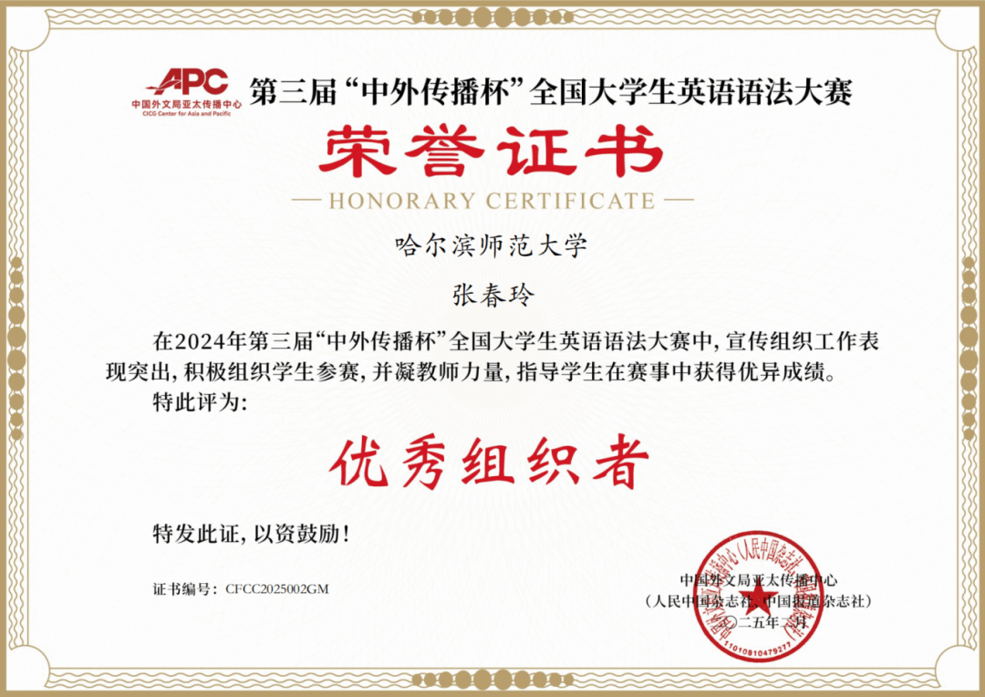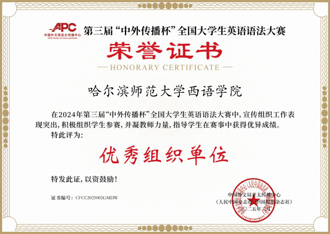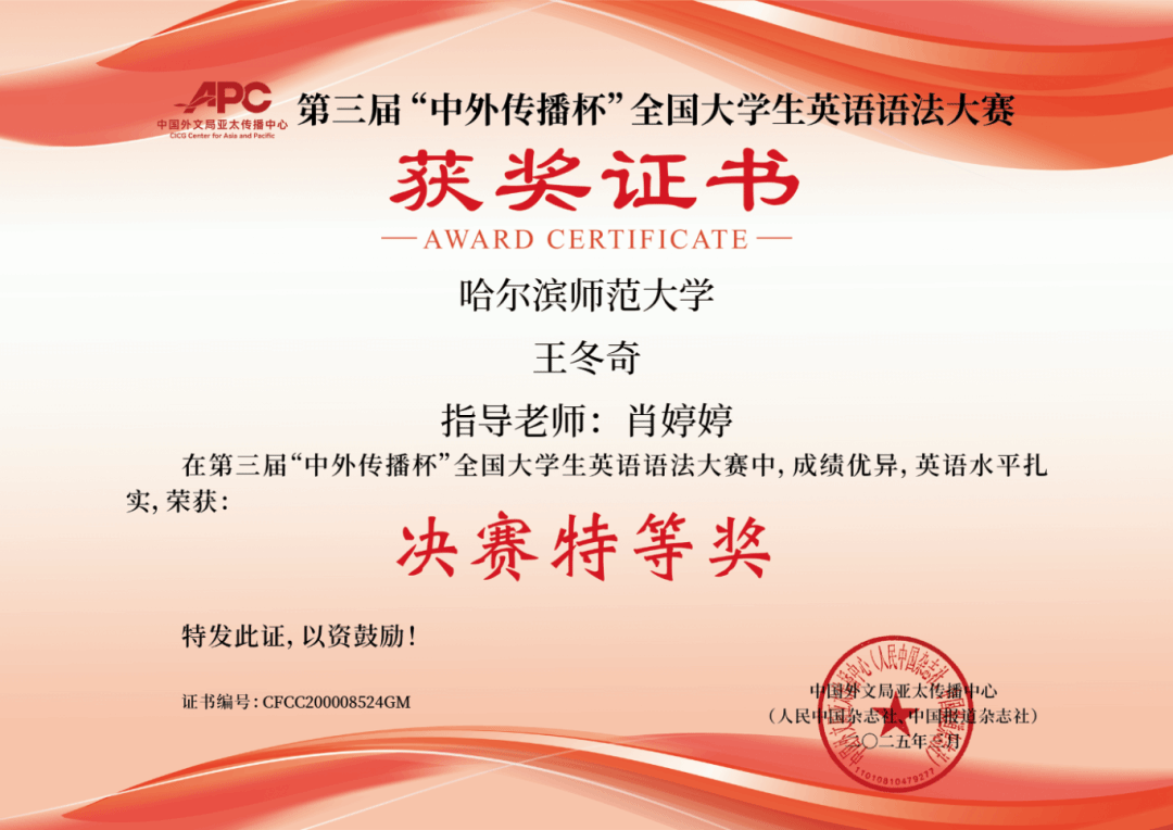 为深入贯彻中共中央、国务院《关于深化教育体制机制改革的意见》和教育部《关于加快建设高水平本科教育全面提高人才培养能力的意见》等文件精神,激发和培养高等院校在校学生的跨文化交流能力,中国外文局亚太传播中心(人民中国杂志社、中国报道杂志社)特举办第三届“中外传播杯”全国大学生英语语法大赛。