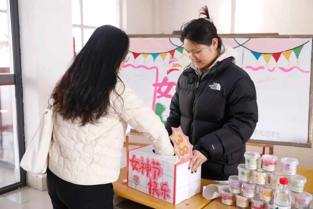 参与活动的师生首先在抽奖箱中抽取一张刮刮卡,刮开后可以看到“打卡拍照”“三八祝福贺卡”“种植盆栽”“精美钥匙扣”等活动以及奖品名称,增强了大家参与的积极性与互动性,提升了大家的节日获得感和幸福感。