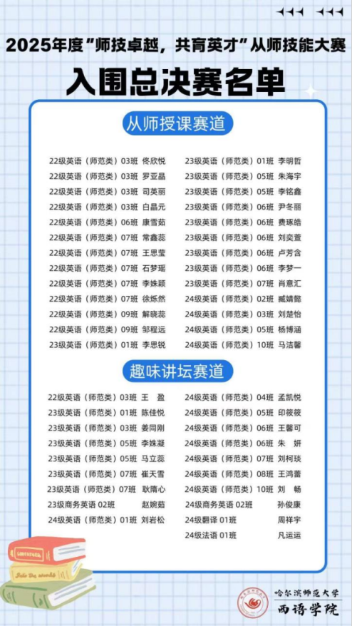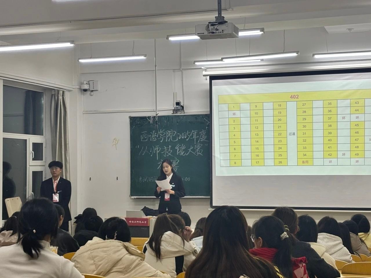 杏坛逐梦,匠心筑光。本次从师大赛紧扣师范教育核心,秉持着“以赛促教,教以促能”宗旨,从教学设计、课堂组织、语言表达、教学创新等层面,对参赛同学展开综合能力考察。初赛的成功举办,极大激发了同学们投身教育实践的热情,生动展现了西语学子追求卓越的进取精神。初赛的辉煌还在眼前闪耀,期待决赛的舞台上,大家再次火力全开,续写荣耀篇章,斩获优异成绩!