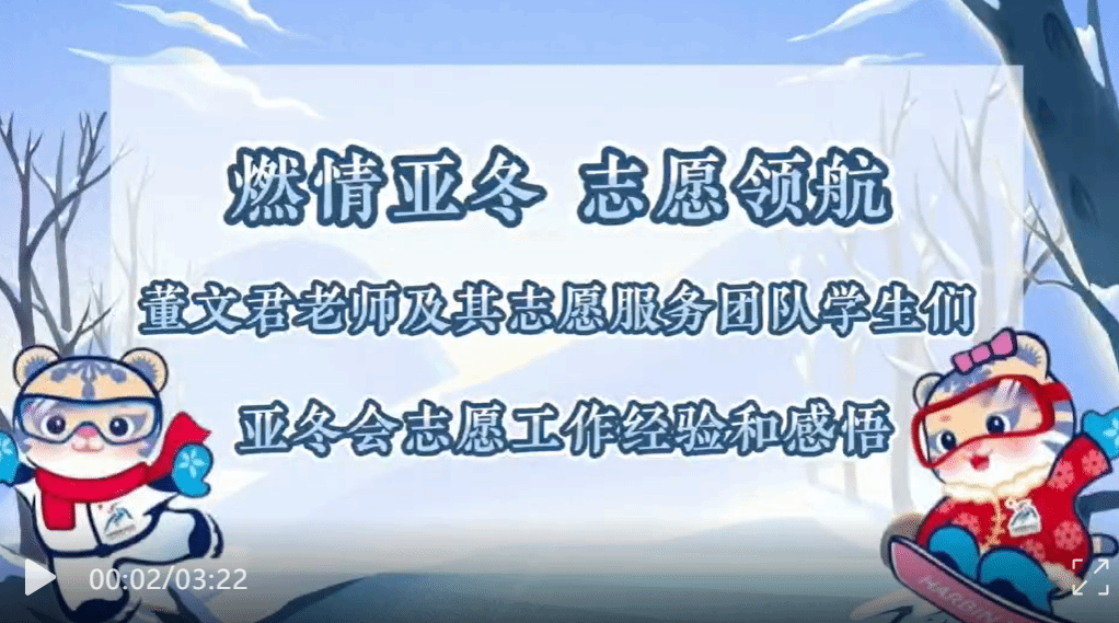 董老师赛前与媒体、礼宾、竞赛、安保、医疗、观众服务等诸多领域协调沟通,收集和整理各领域语言需求清单,按语种、专业领域分配译员和志愿者;此外,根据国际大型赛事惯例,预测赛时可能出现的语言服务需求,确保各项服务有序展开。这些看似零散的服务瞬间,如同珍珠般被串联起来,构成了亚冬会中语言沟通的亮丽风景线,让不同国家和地区的人们都能一同畅享这份冰雪激情。我们有幸请到董文君老师和她的学生进行采访,让我们一起聆听她的亚冬会志愿工作经验和感悟。