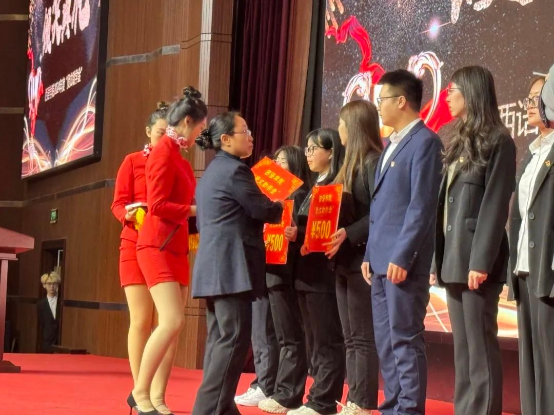 在“守望者奖优金”颁发仪式中,副院长张春玲为获得“守望者奖优金”的同学颁奖。