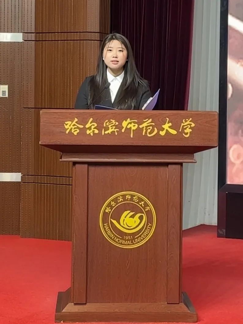 荣获本次“守望者奖优金”的2021级英语(师范类)四班黄珊同学作为获奖学生代表上台发言。她首先向各项奖学金的设立者以及关心支持同学们成长的领导、老师们表达了诚挚的感谢。同时,她表示,奖学金不仅是物质上的资助,更是精神上的鼓舞,象征着责任与担当,还鼓励同学们在学习中不断反思成长。她认为,面对时代的机遇与挑战,青年一代应具备家国情怀,拥有报国之志,将知识转化为智慧,将个人成长与社会发展相结合。