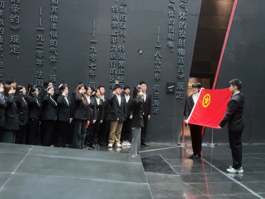 随后,张雨石带领师生代表宣读入团誓词,声音整齐洪亮,誓言中满是对遇难同胞的缅怀、对先烈精神的传承,饱含着对历史的铭记,彰显着为国家繁荣、民族复兴而拼搏的坚定信念,在陈列馆上空久久回荡 。
