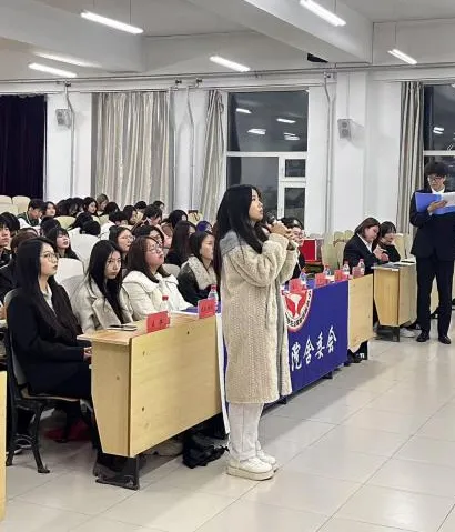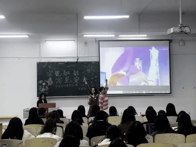 学生宿舍管理委员会副主任陈丽影、郑昌硕为优秀奖获奖者23级西语牙语1班杨佳函,24级英语(师范类)1班刘思彤,24级英语(师范类)5班曹芮,24级英语(师范类)6班王馨可同学颁奖。