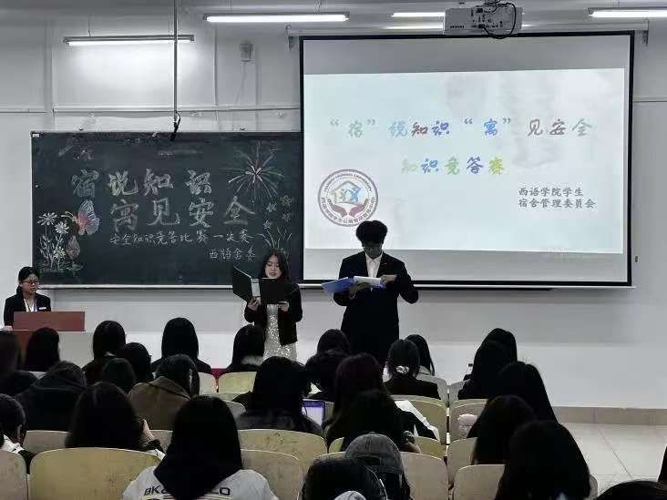 于西语楼503教室举办“‘宿’说知识 ‘寓’见安全”知识竞答比赛决赛。
