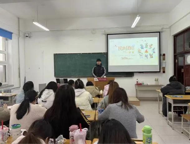 各班级紧扣主题创新形式:商务英语一班学生身着傣族、维吾尔族等民族服饰,通过柔美的孔雀舞表演,展现民族文化交融之美;商英二班以“国家安全中的民族力量”为主线,结合西藏戍边战士、新疆反恐干警等典型案例,诠释各民族同胞共同守护国土安全的使命担当;翻译一班举办“石榴籽故事会”,同学们深情讲述三千孤儿入内蒙、库尔班大叔进北京等民族团结佳话;翻译二班将非遗剪纸与主题教育结合,“同心石榴”“长城守护”等剪纸作品在指尖绽放,传递出“剪出团结情,筑牢安全线”的深刻寓意。英语教育专业各班开展以“民族团结一家亲”为主题的班会,以专业视角解码民族团结与国家安全的内在关联。