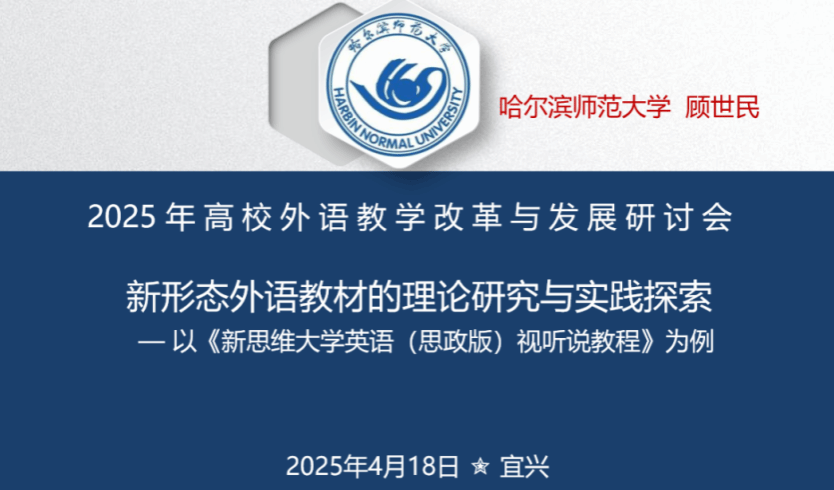 院长顾世民教授应邀出席,以《新思维大学英语(思政版)视听说教程》为例,作了题为“新形态外语教材的理论研究与实践探索”的大会发言,介绍数字化教材开发的理论研究成果与教材研发实践经验。