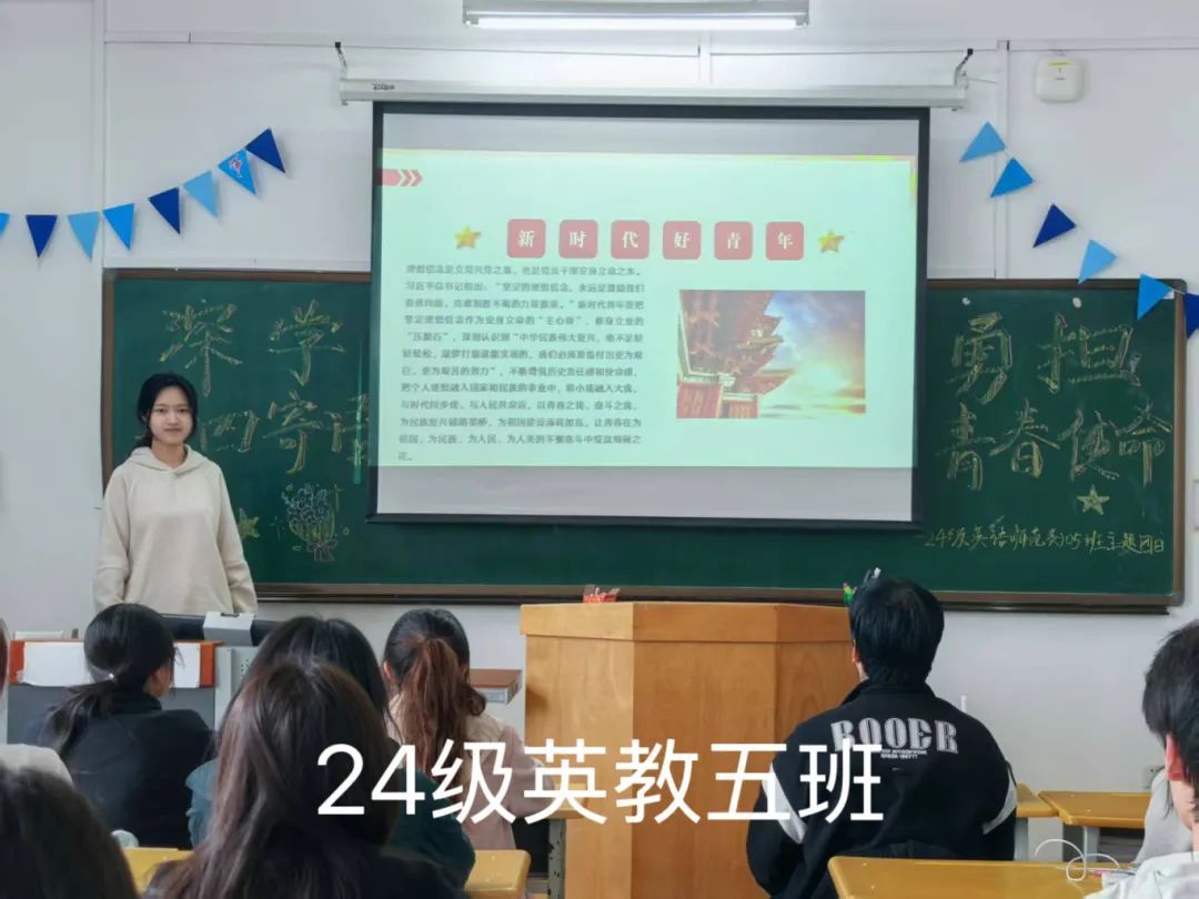 各班团支书利用丰富的影像资料,借助精美的PPT来激发同学们的爱国热情,呼吁同学们去奉献、去奋斗、去创造。把个人梦想同实现中华民族伟大复兴的中国梦结合起来,树立远大理想、热爱伟大祖国、勤奋刻苦学习、勇于砥砺奋斗、心有榜样目标、争做时代先锋。
