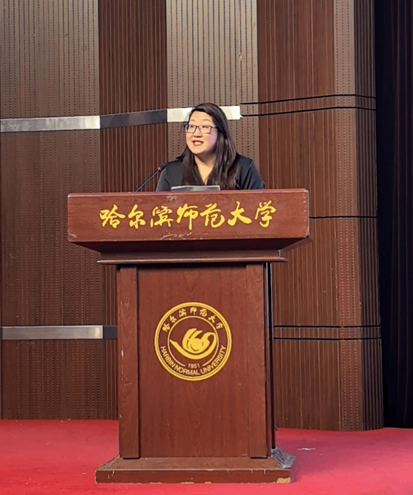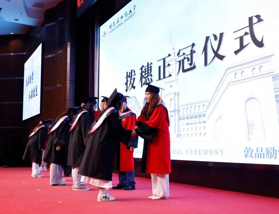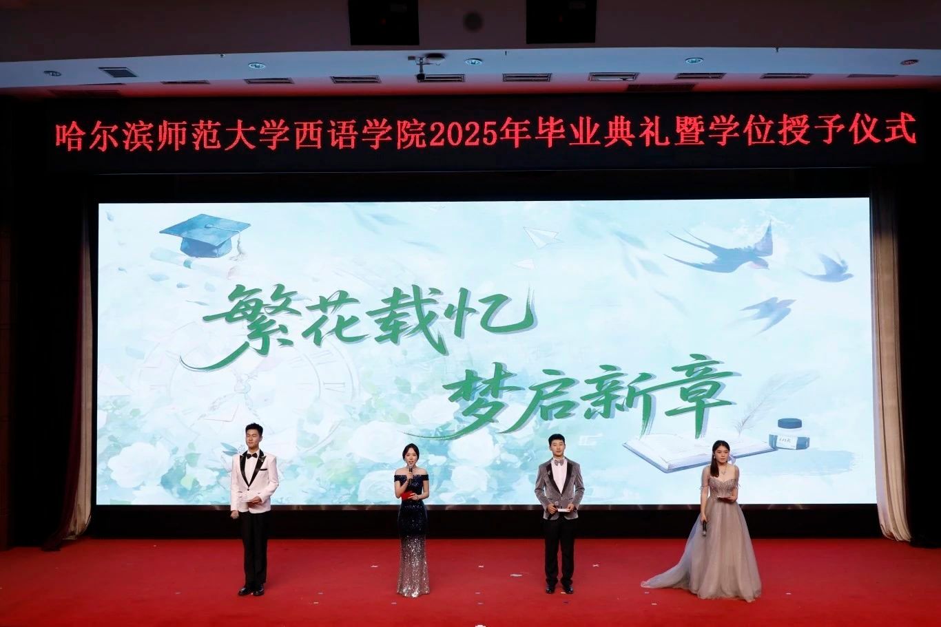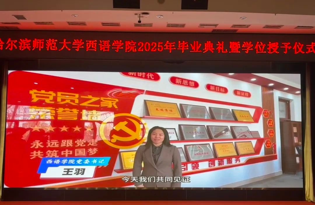 的憧憬,感恩学院师长严谨治学、倾囊相授,同窗携手奋进、共探学术。身为党员,他牢记“传播中国声音”的使命。以登山喻学术路,感恩母校教师如灯塔引航。最后,他号召带着母校精神与文化行囊,勇赴星辰大海,在世界舞台标注哈师大人的高度。
