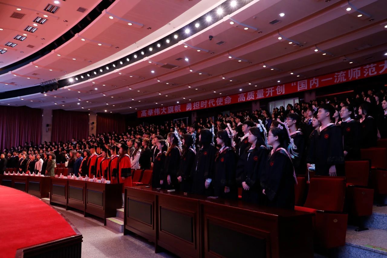 学位评定分委会主席、院长、博士研究生导师顾世民教授庄严致辞。他代表全体教师给予毕业生热烈的祝贺,向为学生成长付出心血的家长和老师致敬。他赞叹毕业生们在青春岁月里耕耘奋斗,于时光中收获成长,并给同学们提了三点建议:一是要在时代浪潮奔涌中锚定青春坐标,矢志奋斗,勇毅前行;二是要讲好中国故事,以语言为媒,传文明之光;三是要与时代共振,在挑战中锻造人生韧性。强调当代青年要勇担使命,以坚韧务实奋斗,成就人生“大我”。叮嘱毕业生铭记哈师大美好瞬间,带着回忆、信仰与信心,在新环境接受考验、砥砺前行,开启新程、开创新未来!