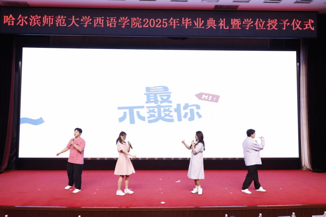 歌曲串烧《岁月神偷》、《像你这样的朋友》与合唱《我们的明天》将西语毕业生们带入往昔时光的光影画卷,激励着他们向未来勇敢奔赴。