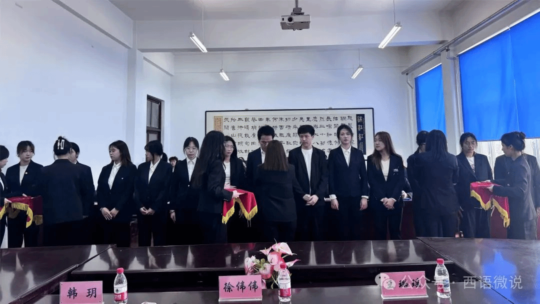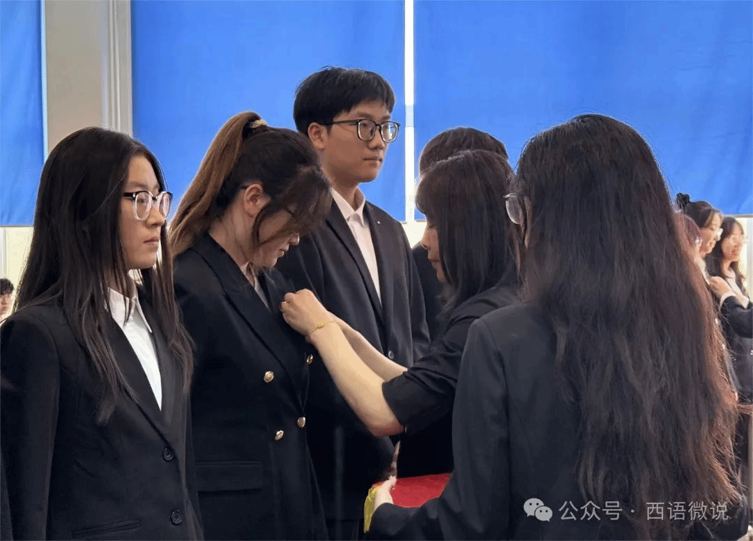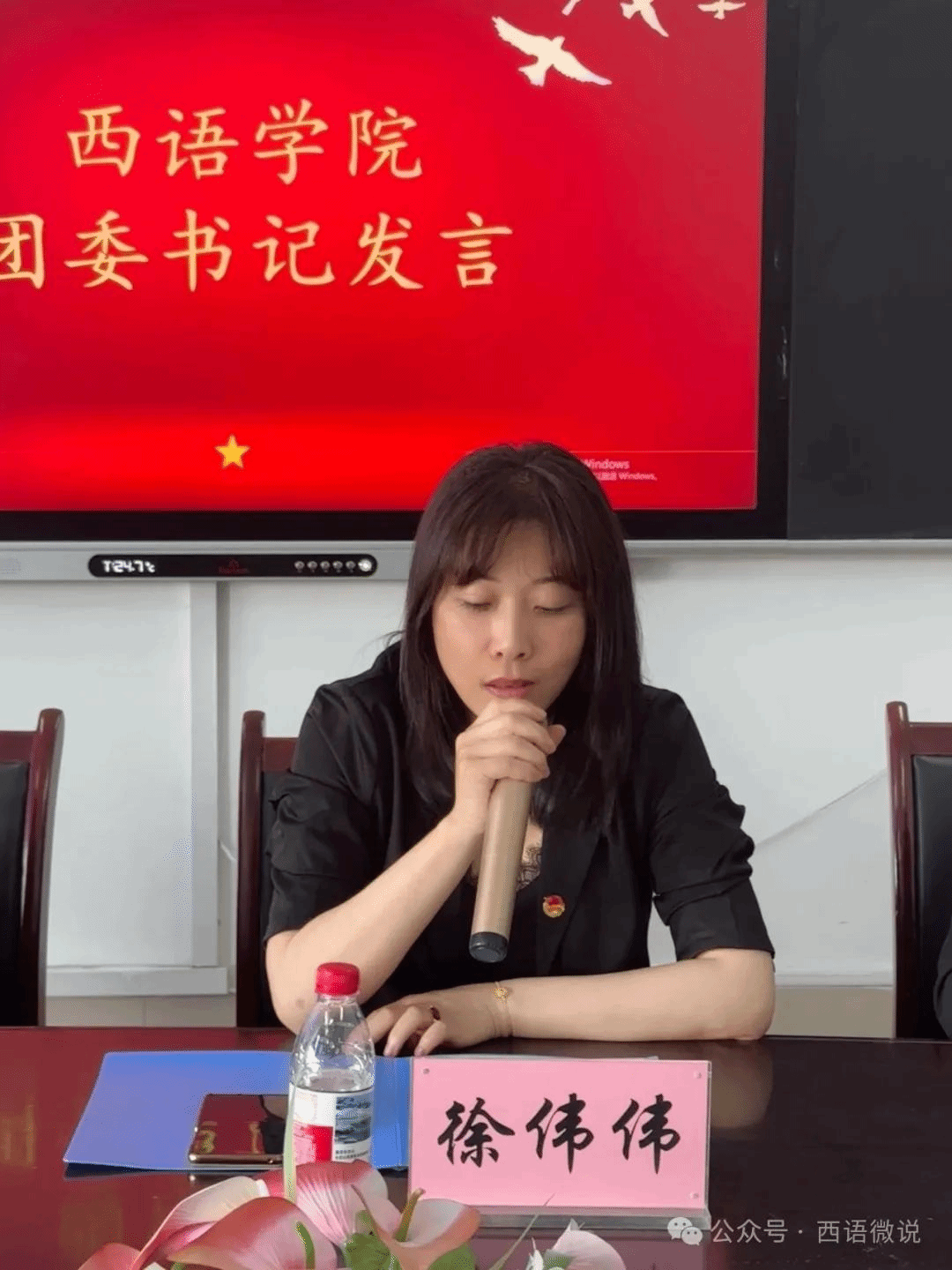 团委书记徐伟伟、西语团委学生兼职副书记王璐瑶、韩玥,老团员代表及全体新团员参加本次入团仪式。