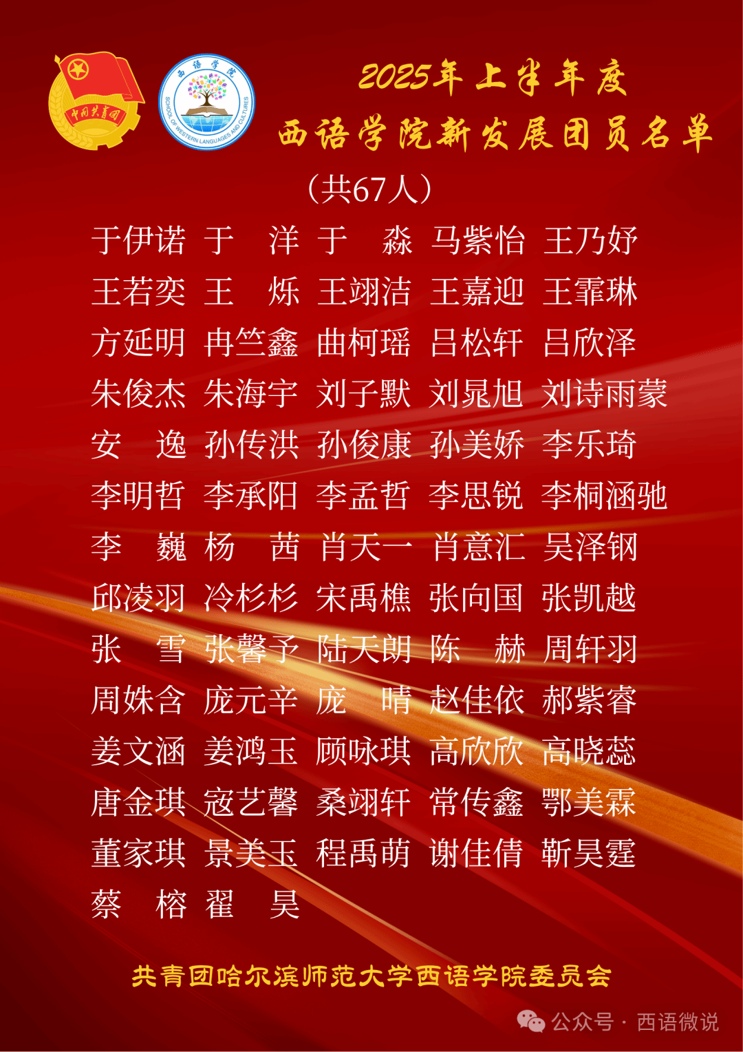 根据《中国共产主义青年团章程》有关规定,经各团支部评议推荐,我院团委严格审核,以下67名同学为本次新发展团员: